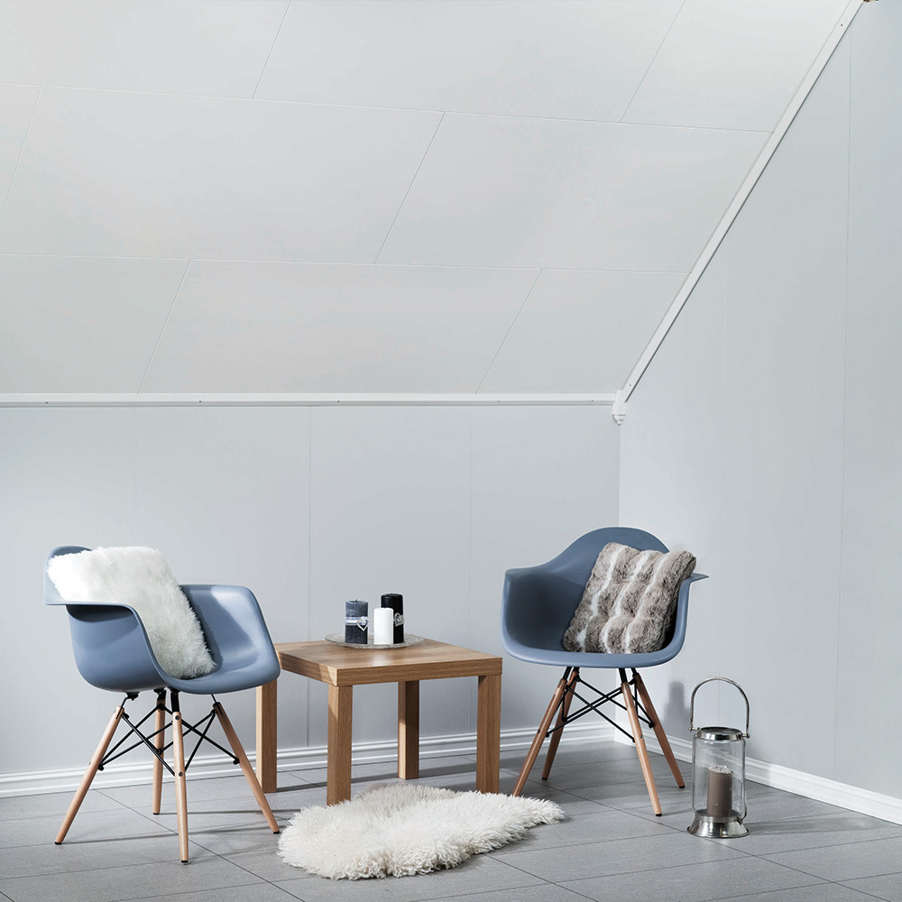 Färdigmålade väggskivor tillverkade i miljövänlig och slitstark träfiber. Not och fjäder ger enklare och snabbare montage. Du får också en dold infästning, antingen på befintlig vägg eller direkt på regelstomme. De färdigmålade väggskivorna är naturprodukter som bidrar till en sundare boendemiljö. De är lätta att hålla rena och kan även lätt målas om i din önskade färg. Idealiska för snabb och direkt montering av dina önskade saker. Och då du slipper att spackla, slipa, måla och tapetsera sparar du tid och pengar.