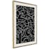 Affischen är inramad i en minimalistisk, lätt ram som gör den mer synlig mot väggen. Affischen är säkrad med akrylglas och en hänganordning finns på ramens baksida.