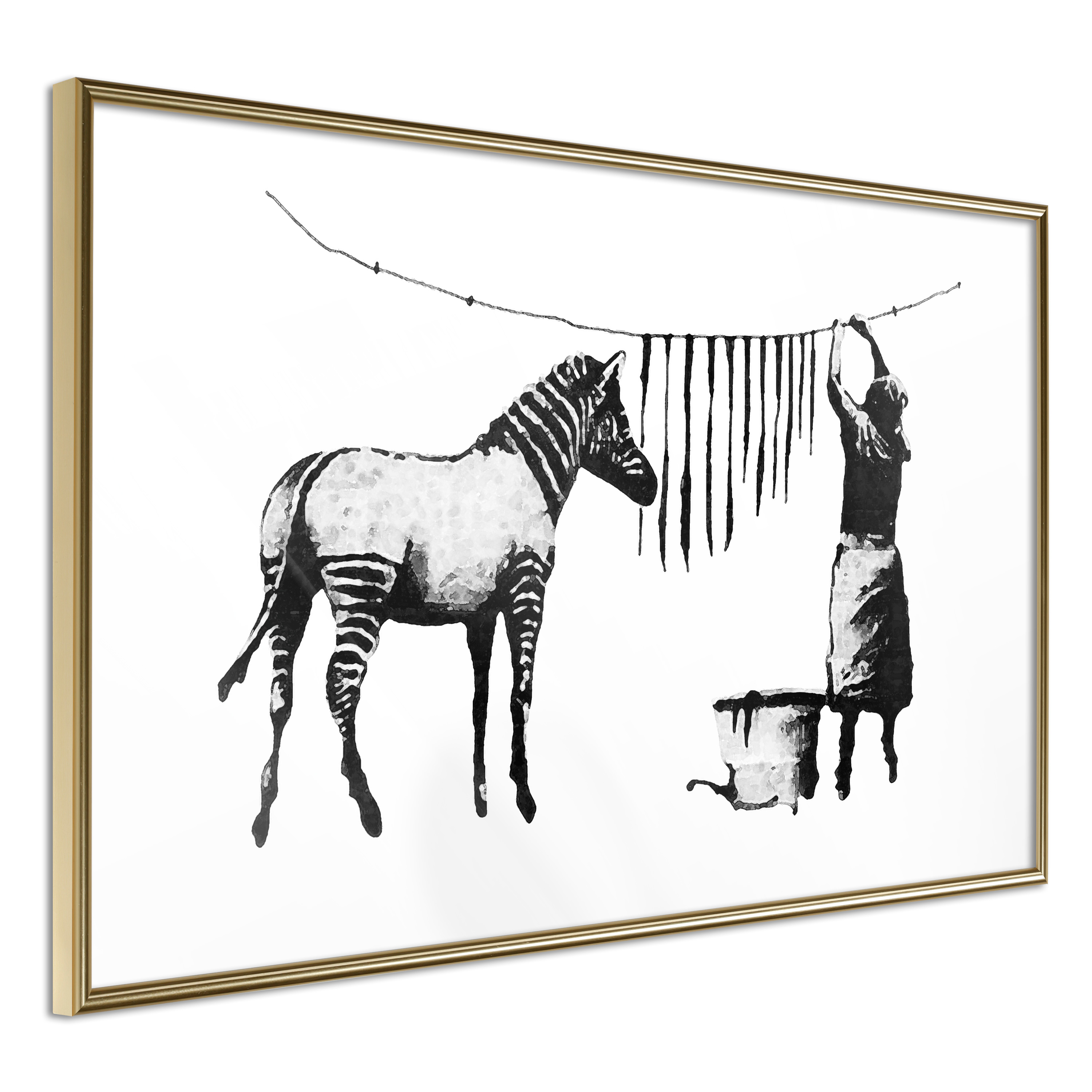 Affischen är inramad i en minimalistisk, lätt ram som gör den mer synlig mot väggen. Affischen är säkrad med akrylglas och en hänganordning finns på ramens baksida.
