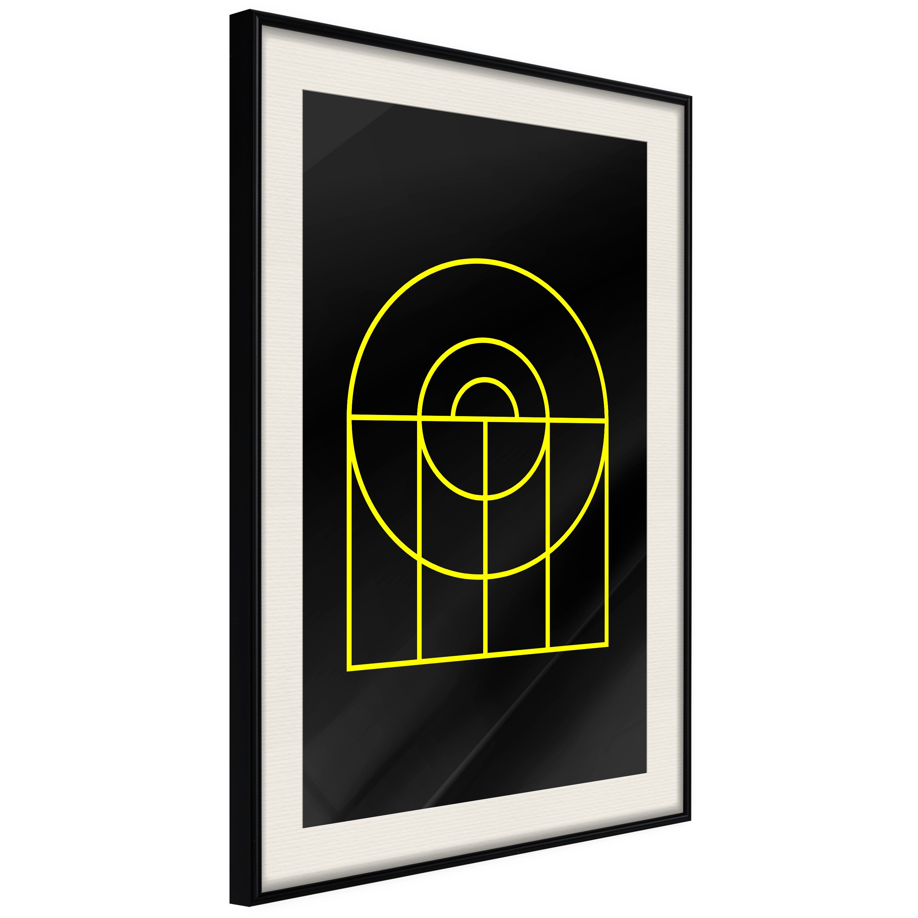 Passepartouten i écru betonar färgern på affischen och skapar en extra kontrast mellan grafiken, ramen och väggen. Dessutom ger den ramen ett svagt tredimensionellt intryck och fungerar även som ett skyddslager som ytterligare skyddar afischen. Affischen är säkrad med akrylglas och en hänganordning finns på ramens baksida.