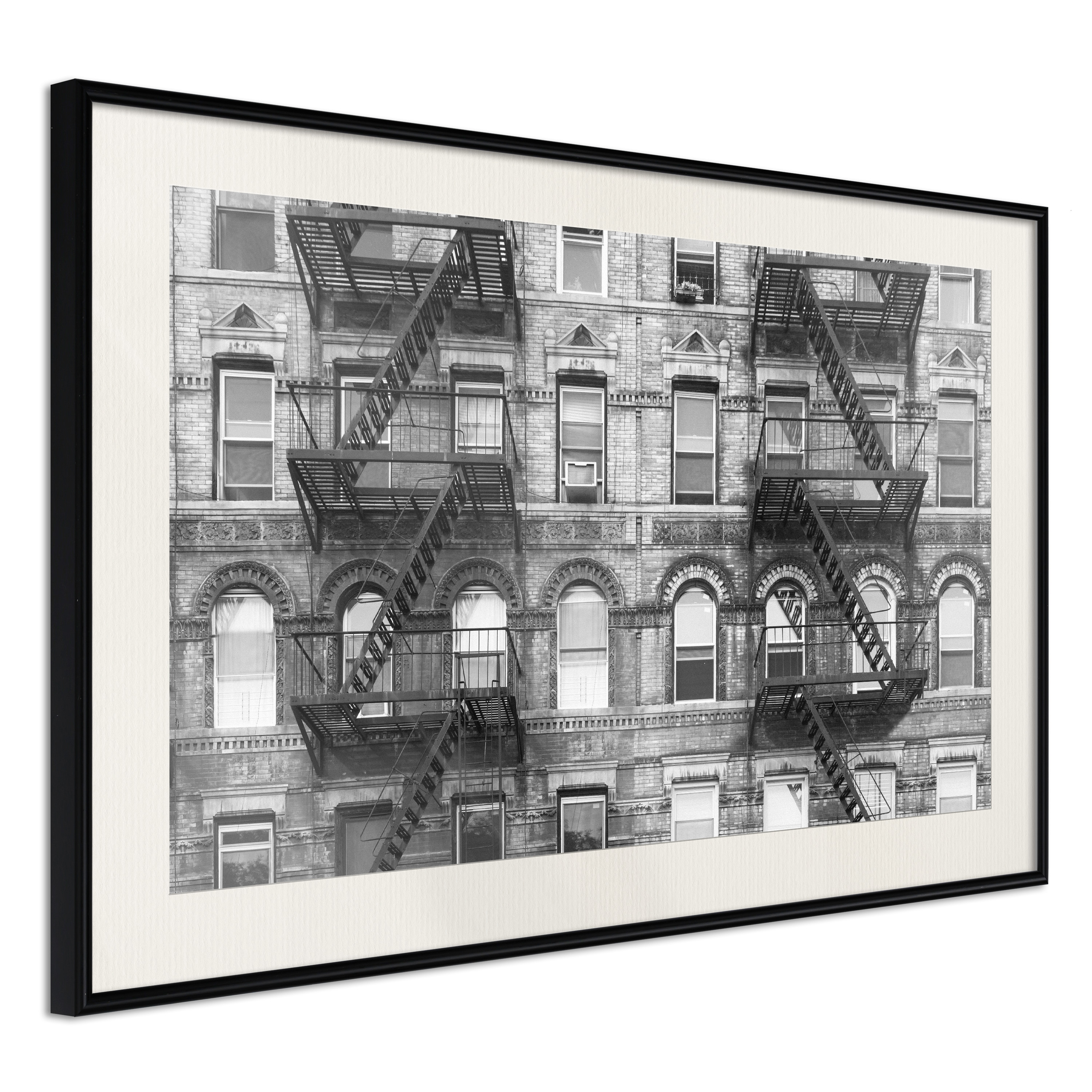 Passepartouten i écru betonar färgern på affischen och skapar en extra kontrast mellan grafiken, ramen och väggen. Dessutom ger den ramen ett svagt tredimensionellt intryck och fungerar även som ett skyddslager som ytterligare skyddar afischen. Affischen är säkrad med akrylglas och en hänganordning finns på ramens baksida.