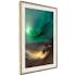 Passepartouten i écru betonar färgern på affischen och skapar en extra kontrast mellan grafiken, ramen och väggen. Dessutom ger den ramen ett svagt tredimensionellt intryck och fungerar även som ett skyddslager som ytterligare skyddar afischen. Affischen är säkrad med akrylglas och en hänganordning finns på ramens baksida.