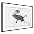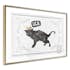 Affischen är inramad i en minimalistisk, lätt ram som gör den mer synlig mot väggen. Affischen är säkrad med akrylglas och en hänganordning finns på ramens baksida.