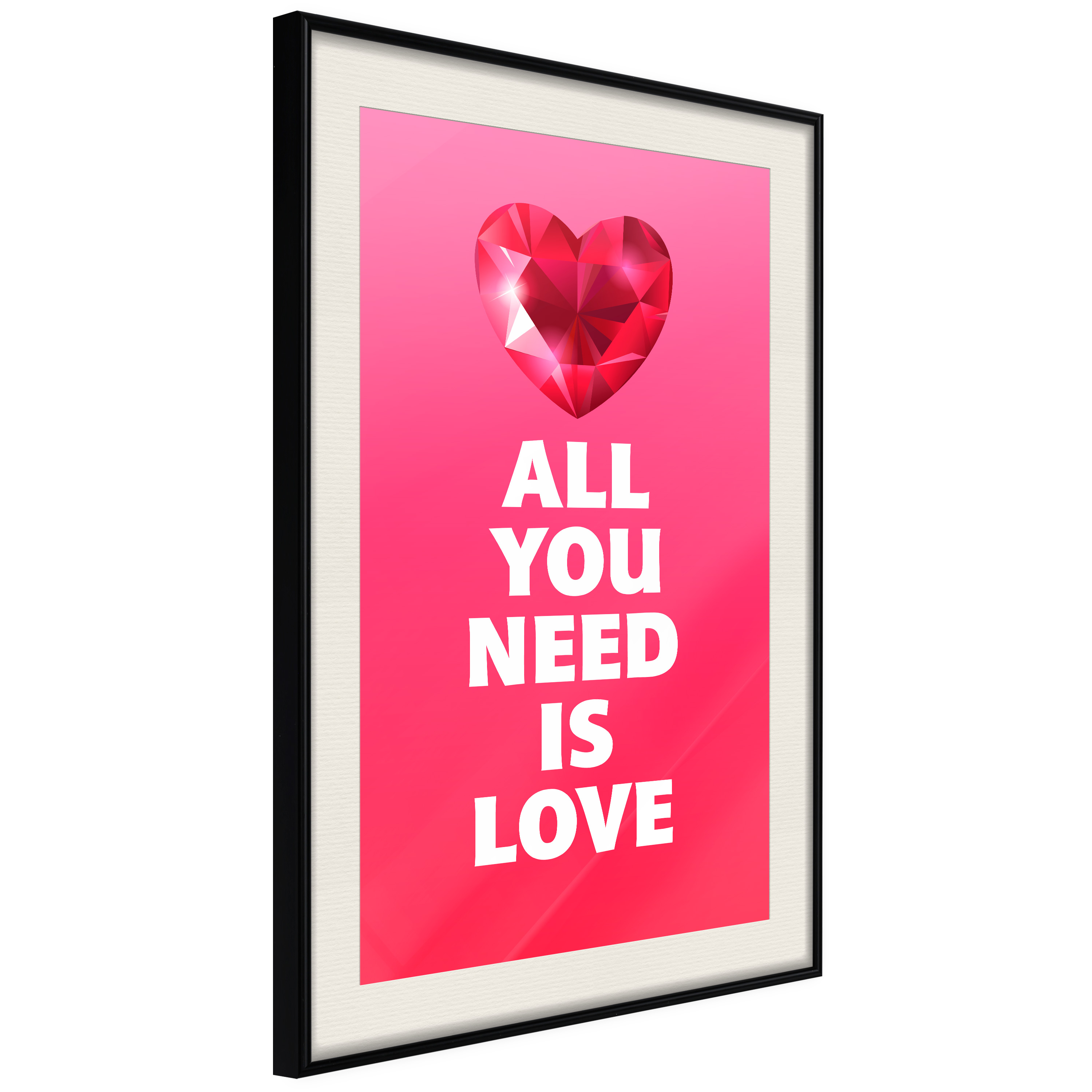 Passepartouten i écru betonar färgern på affischen och skapar en extra kontrast mellan grafiken, ramen och väggen. Dessutom ger den ramen ett svagt tredimensionellt intryck och fungerar även som ett skyddslager som ytterligare skyddar afischen. Affischen är säkrad med akrylglas och en hänganordning finns på ramens baksida.