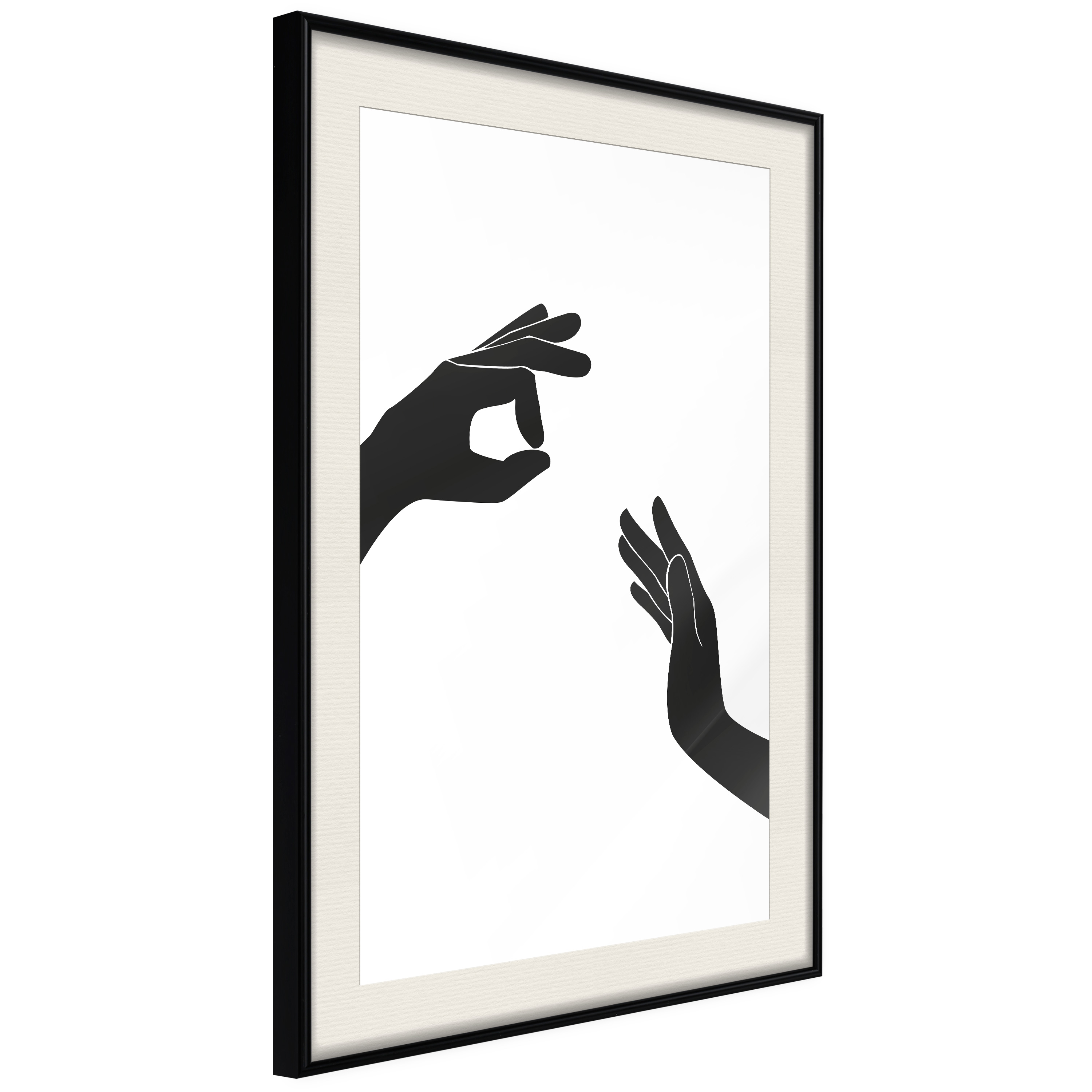 Passepartouten i écru betonar färgern på affischen och skapar en extra kontrast mellan grafiken, ramen och väggen. Dessutom ger den ramen ett svagt tredimensionellt intryck och fungerar även som ett skyddslager som ytterligare skyddar afischen. Affischen är säkrad med akrylglas och en hänganordning finns på ramens baksida.