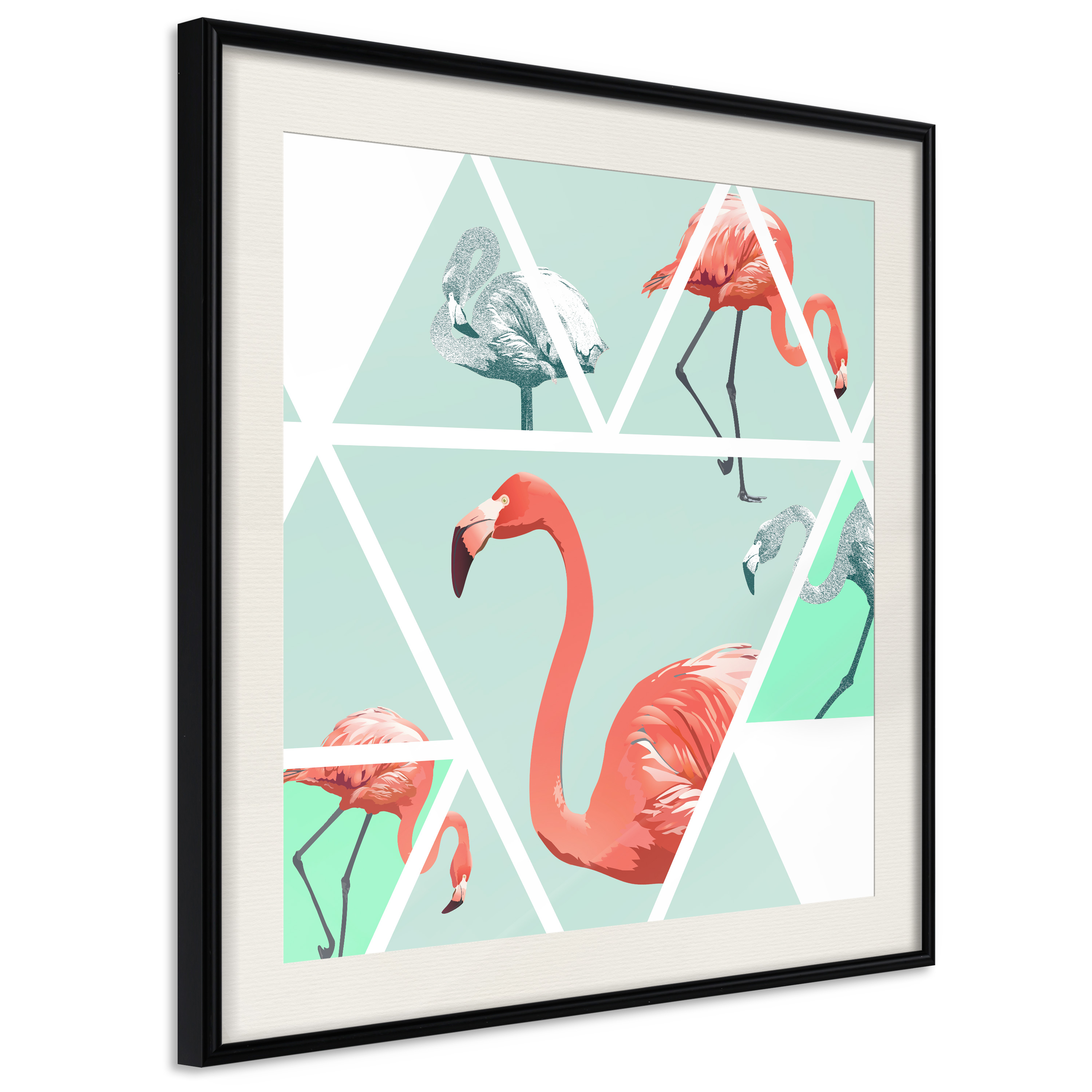 Passepartouten i écru betonar färgern på affischen och skapar en extra kontrast mellan grafiken, ramen och väggen. Dessutom ger den ramen ett svagt tredimensionellt intryck och fungerar även som ett skyddslager som ytterligare skyddar afischen. Affischen är säkrad med akrylglas och en hänganordning finns på ramens baksida.