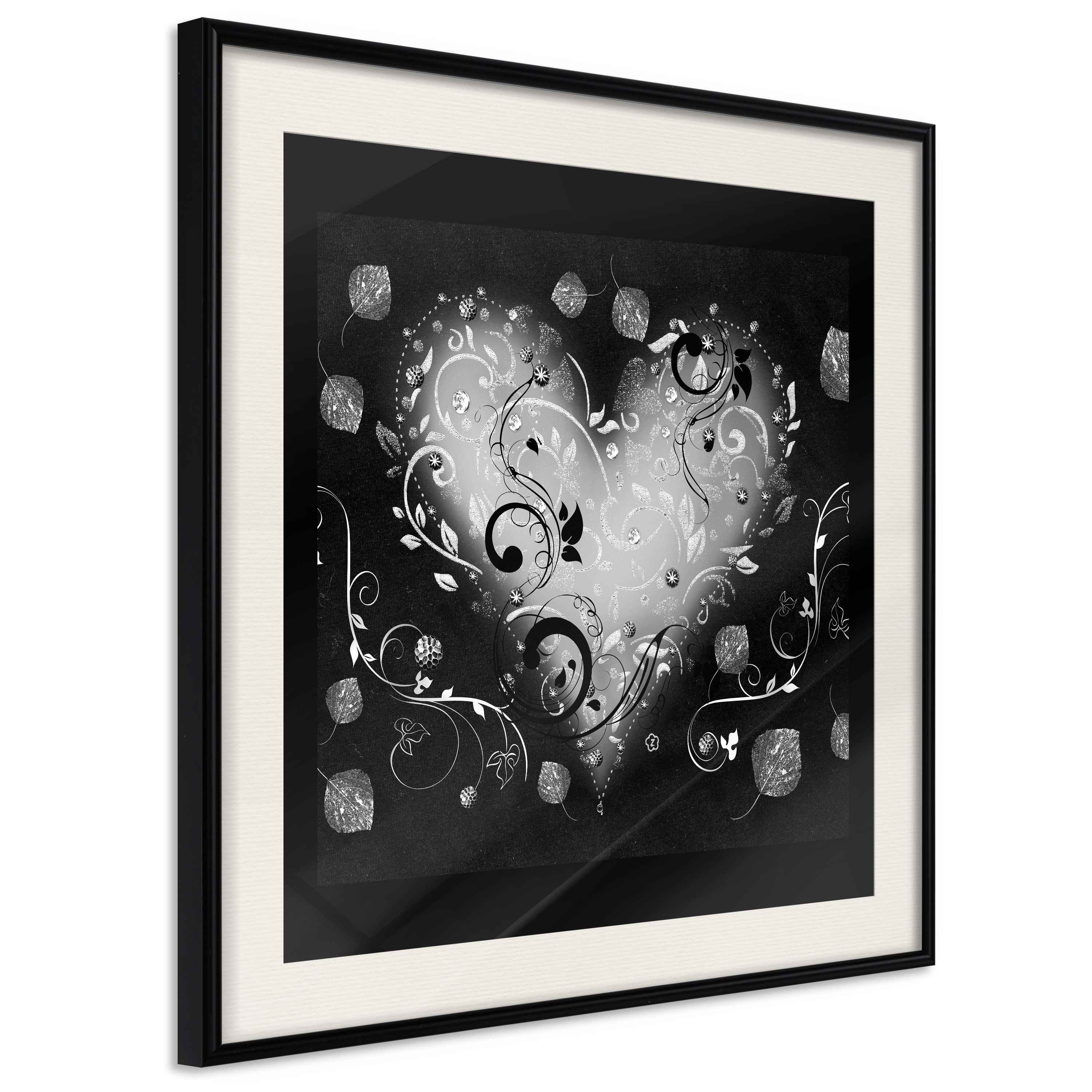 Passepartouten i écru betonar färgern på affischen och skapar en extra kontrast mellan grafiken, ramen och väggen. Dessutom ger den ramen ett svagt tredimensionellt intryck och fungerar även som ett skyddslager som ytterligare skyddar afischen. Affischen är säkrad med akrylglas och en hänganordning finns på ramens baksida.