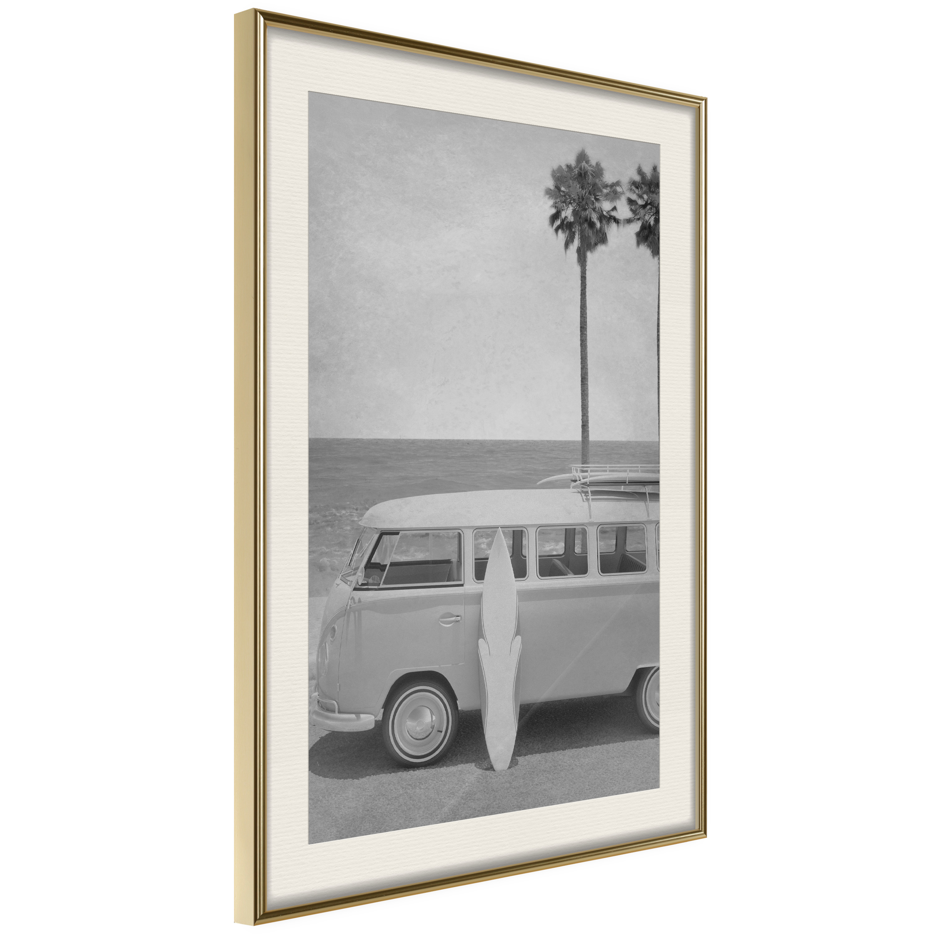 Affischen är inramad i en minimalistisk, lätt ram som gör den mer synlig mot väggen. Affischen är säkrad med akrylglas och en hänganordning finns på ramens baksida.
