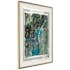 Passepartouten i écru betonar färgern på affischen och skapar en extra kontrast mellan grafiken, ramen och väggen. Dessutom ger den ramen ett svagt tredimensionellt intryck och fungerar även som ett skyddslager som ytterligare skyddar afischen. Affischen är säkrad med akrylglas och en hänganordning finns på ramens baksida.