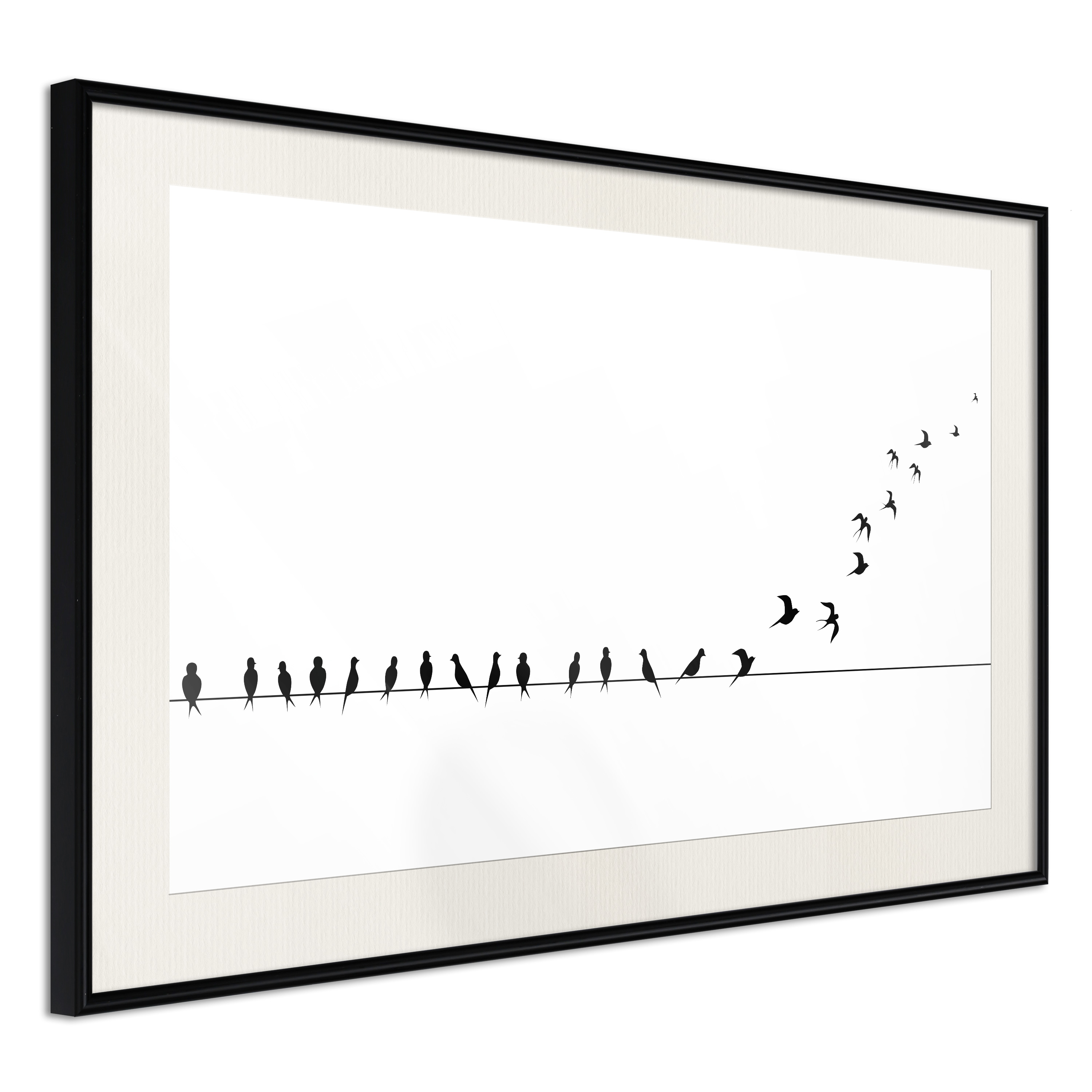 Passepartouten i écru betonar färgern på affischen och skapar en extra kontrast mellan grafiken, ramen och väggen. Dessutom ger den ramen ett svagt tredimensionellt intryck och fungerar även som ett skyddslager som ytterligare skyddar afischen. Affischen är säkrad med akrylglas och en hänganordning finns på ramens baksida.
