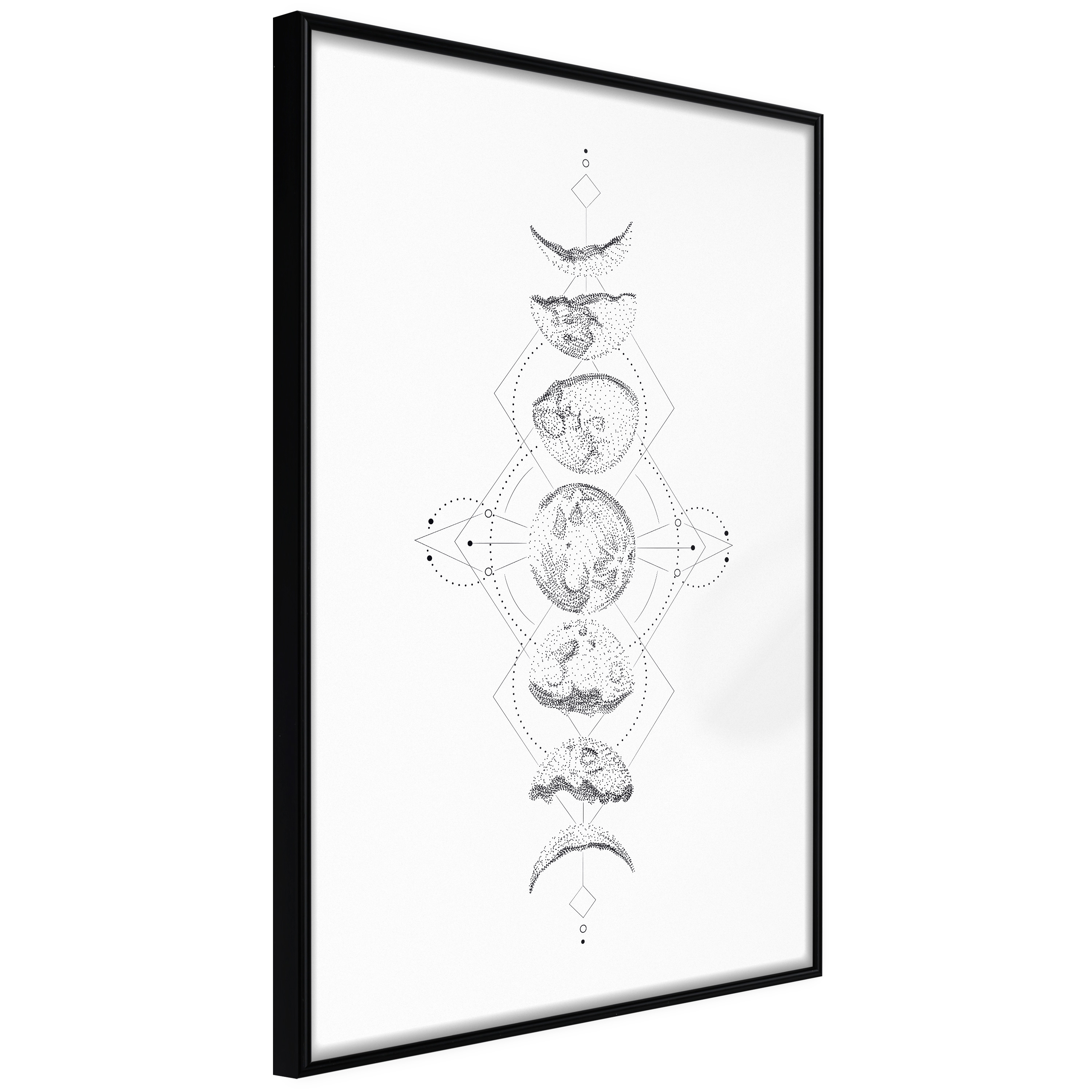 Affischen är inramad i en minimalistisk, lätt ram som gör den mer synlig mot väggen. Affischen är säkrad med akrylglas och en hänganordning finns på ramens baksida.
