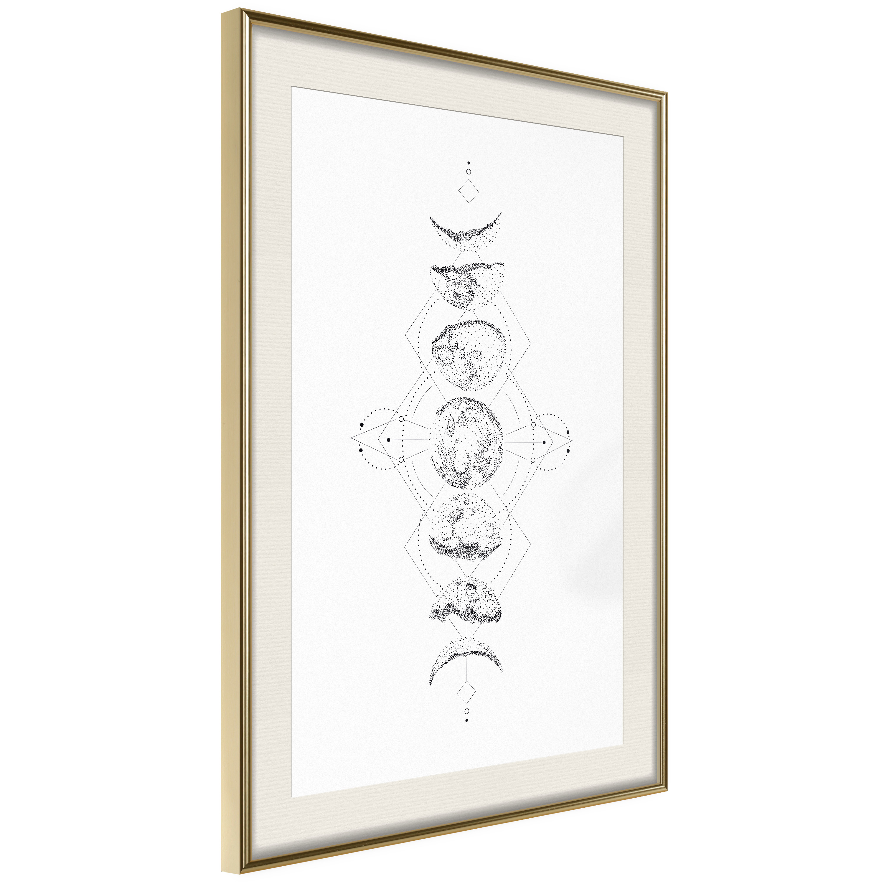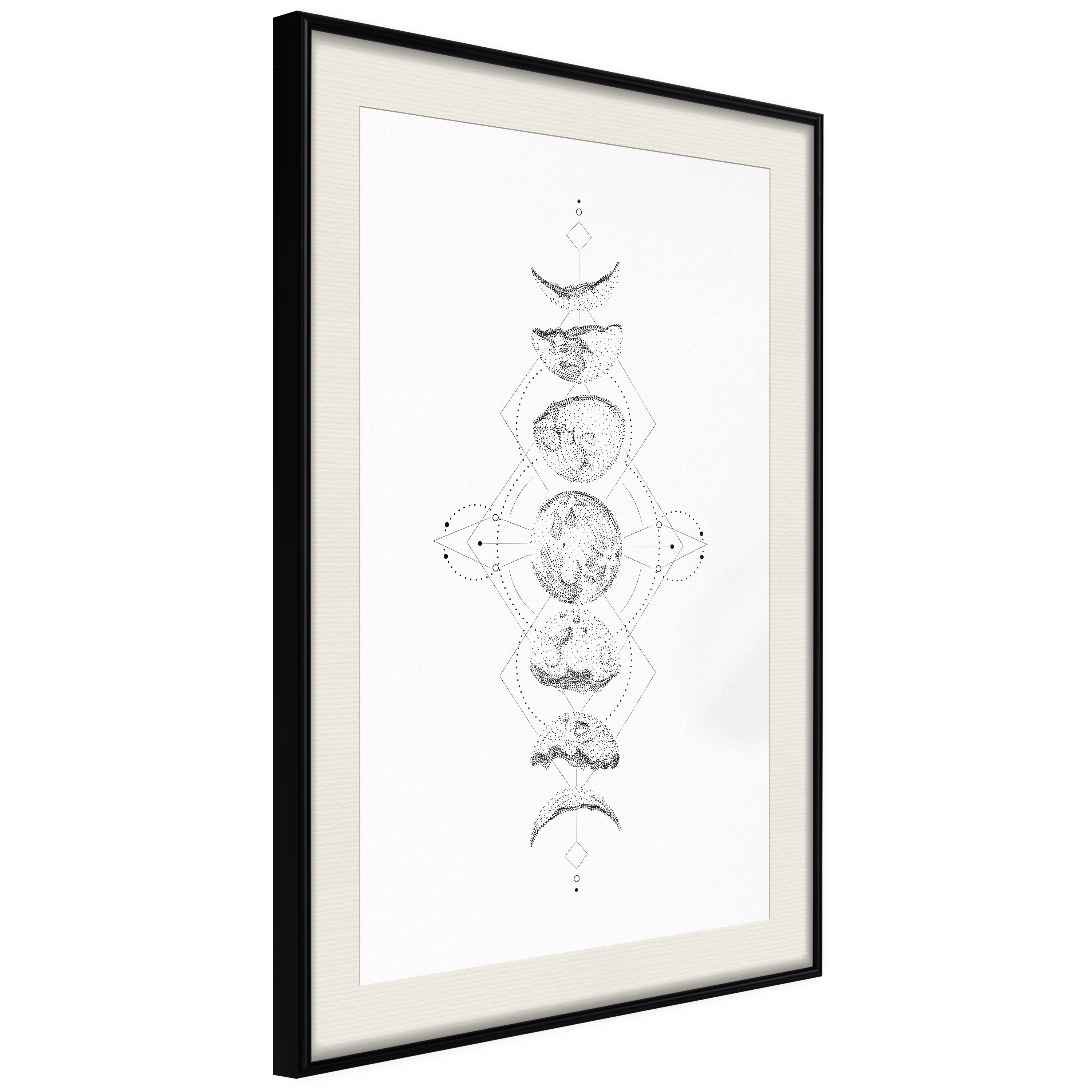 Passepartouten i écru betonar färgern på affischen och skapar en extra kontrast mellan grafiken, ramen och väggen. Dessutom ger den ramen ett svagt tredimensionellt intryck och fungerar även som ett skyddslager som ytterligare skyddar afischen. Affischen är säkrad med akrylglas och en hänganordning finns på ramens baksida.