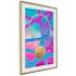 Affischen är inramad i en minimalistisk, lätt ram som gör den mer synlig mot väggen. Affischen är säkrad med akrylglas och en hänganordning finns på ramens baksida.