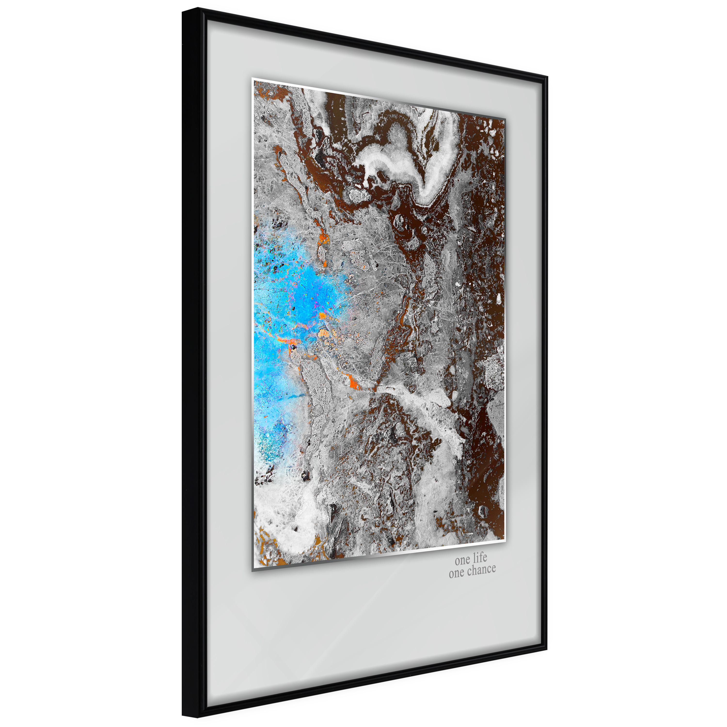 Affischen är inramad i en minimalistisk, lätt ram som gör den mer synlig mot väggen. Affischen är säkrad med akrylglas och en hänganordning finns på ramens baksida.