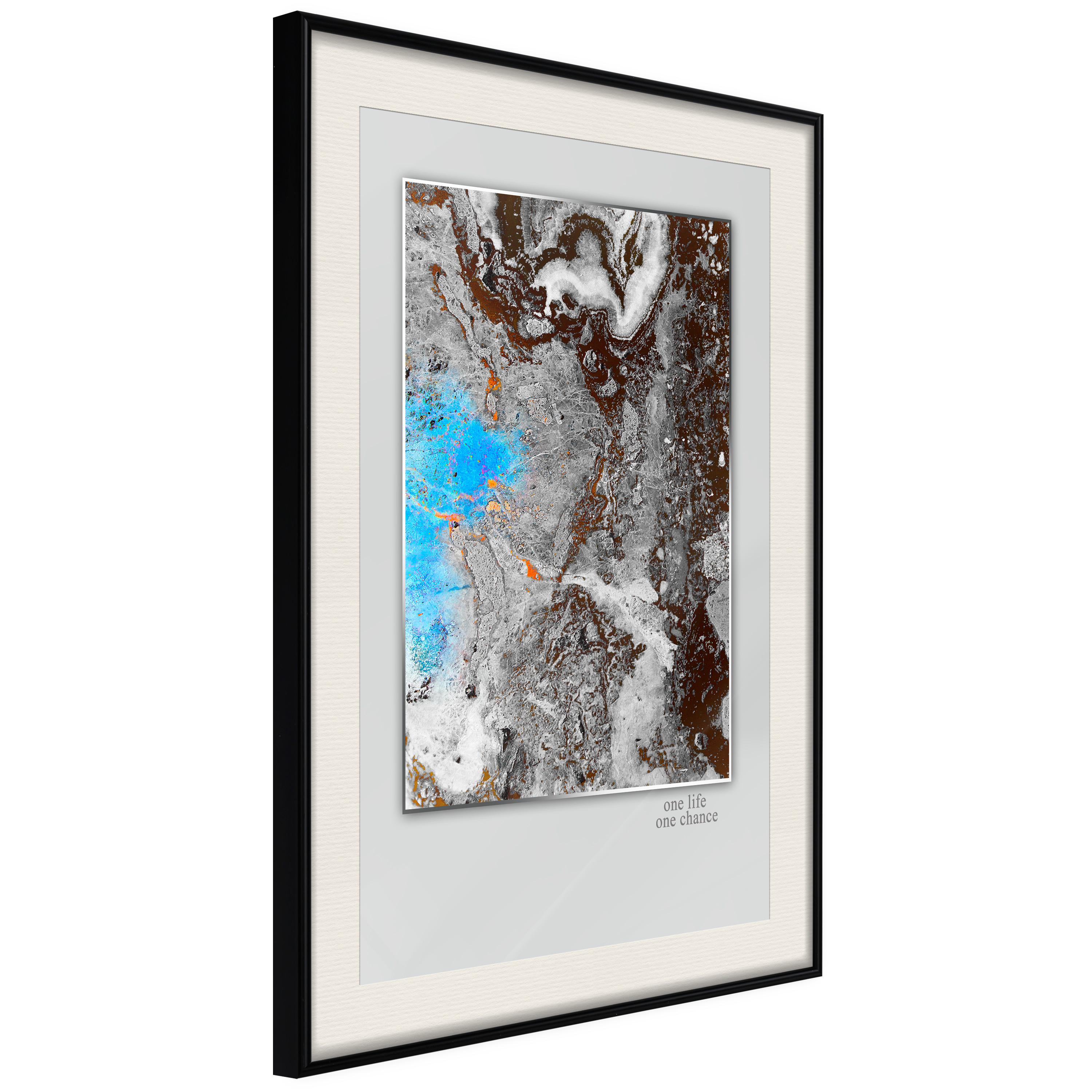 Passepartouten i écru betonar färgern på affischen och skapar en extra kontrast mellan grafiken, ramen och väggen. Dessutom ger den ramen ett svagt tredimensionellt intryck och fungerar även som ett skyddslager som ytterligare skyddar afischen. Affischen är säkrad med akrylglas och en hänganordning finns på ramens baksida.