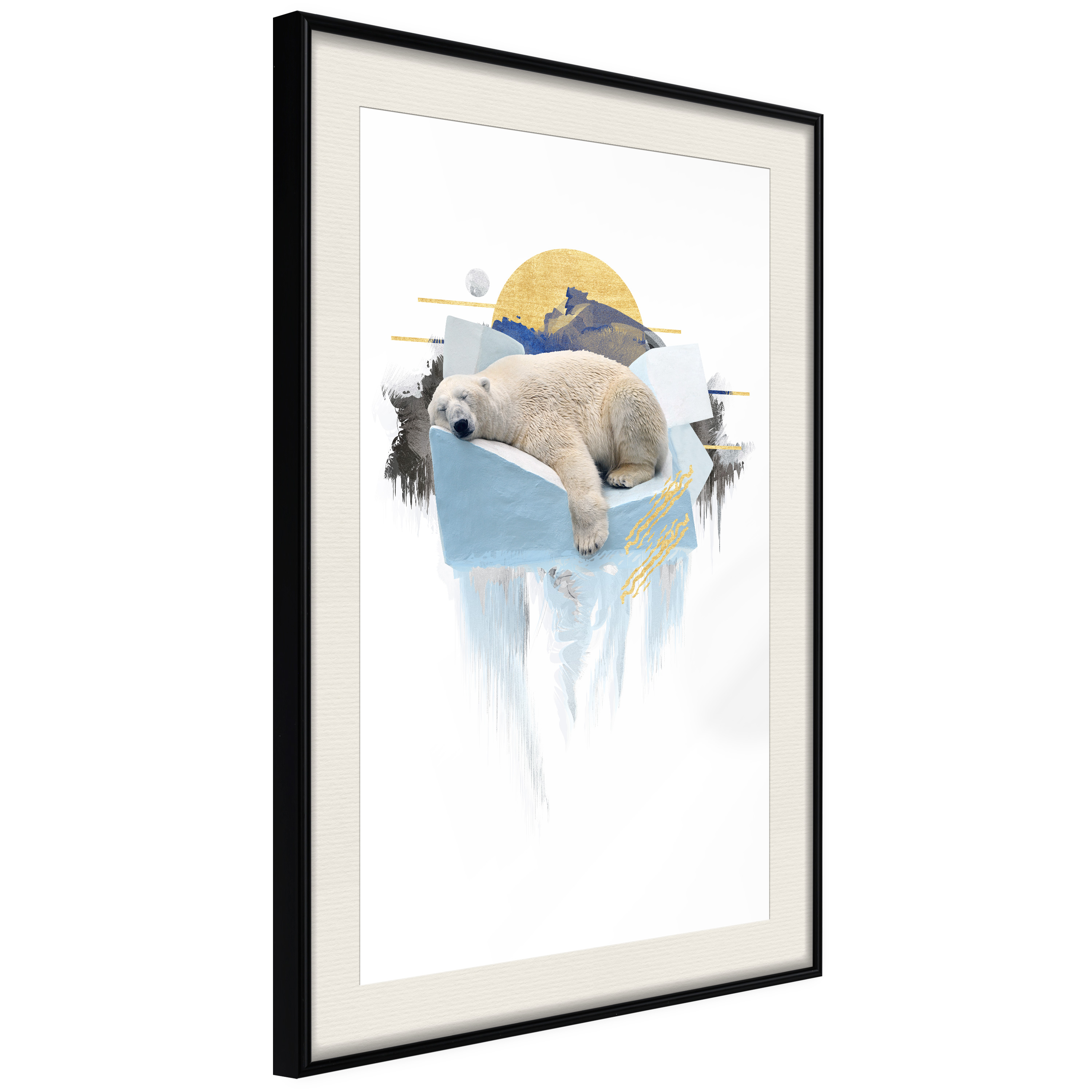 Passepartouten i écru betonar färgern på affischen och skapar en extra kontrast mellan grafiken, ramen och väggen. Dessutom ger den ramen ett svagt tredimensionellt intryck och fungerar även som ett skyddslager som ytterligare skyddar afischen. Affischen är säkrad med akrylglas och en hänganordning finns på ramens baksida.