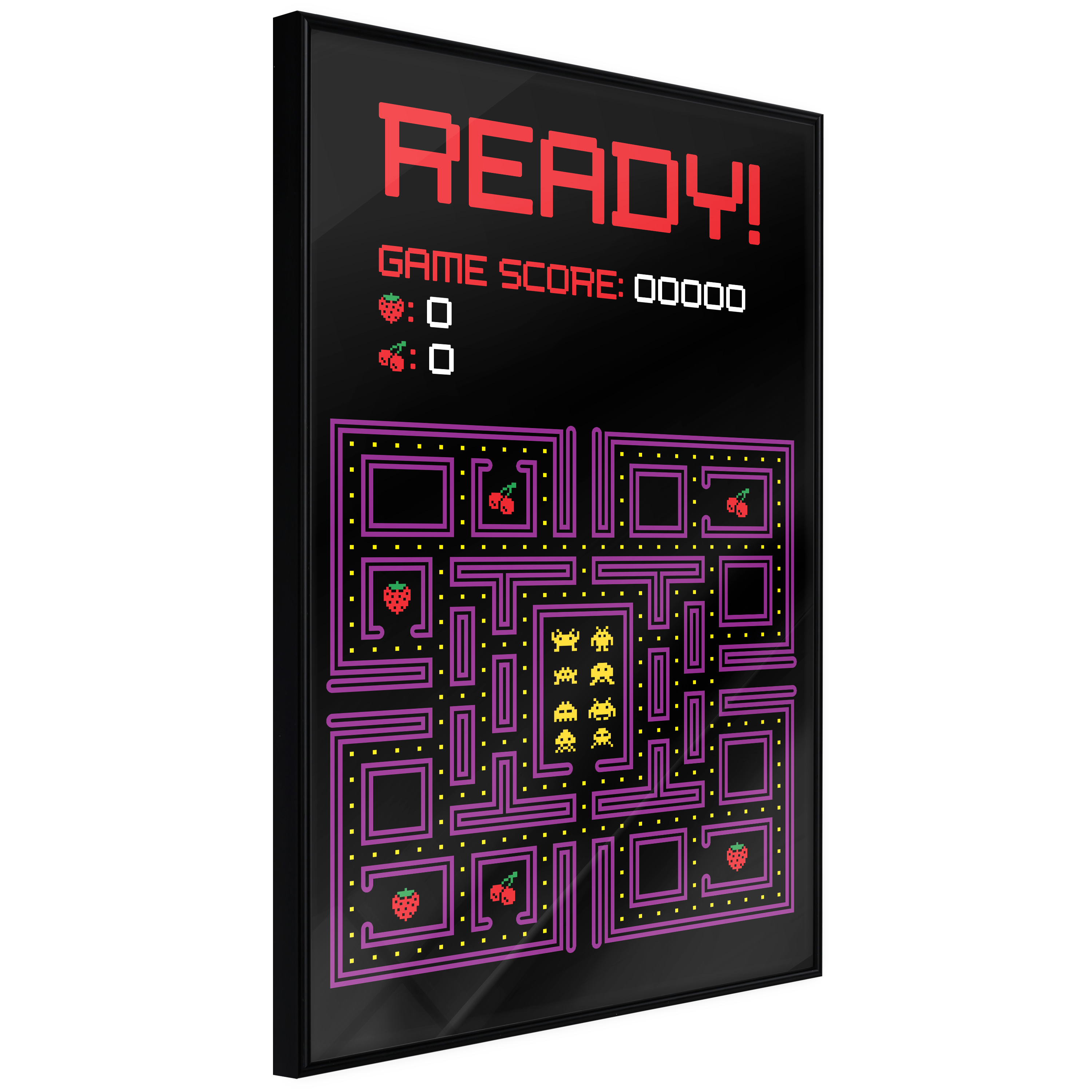 Affischen är inramad i en minimalistisk, lätt ram som gör den mer synlig mot väggen. Affischen är säkrad med akrylglas och en hänganordning finns på ramens baksida.