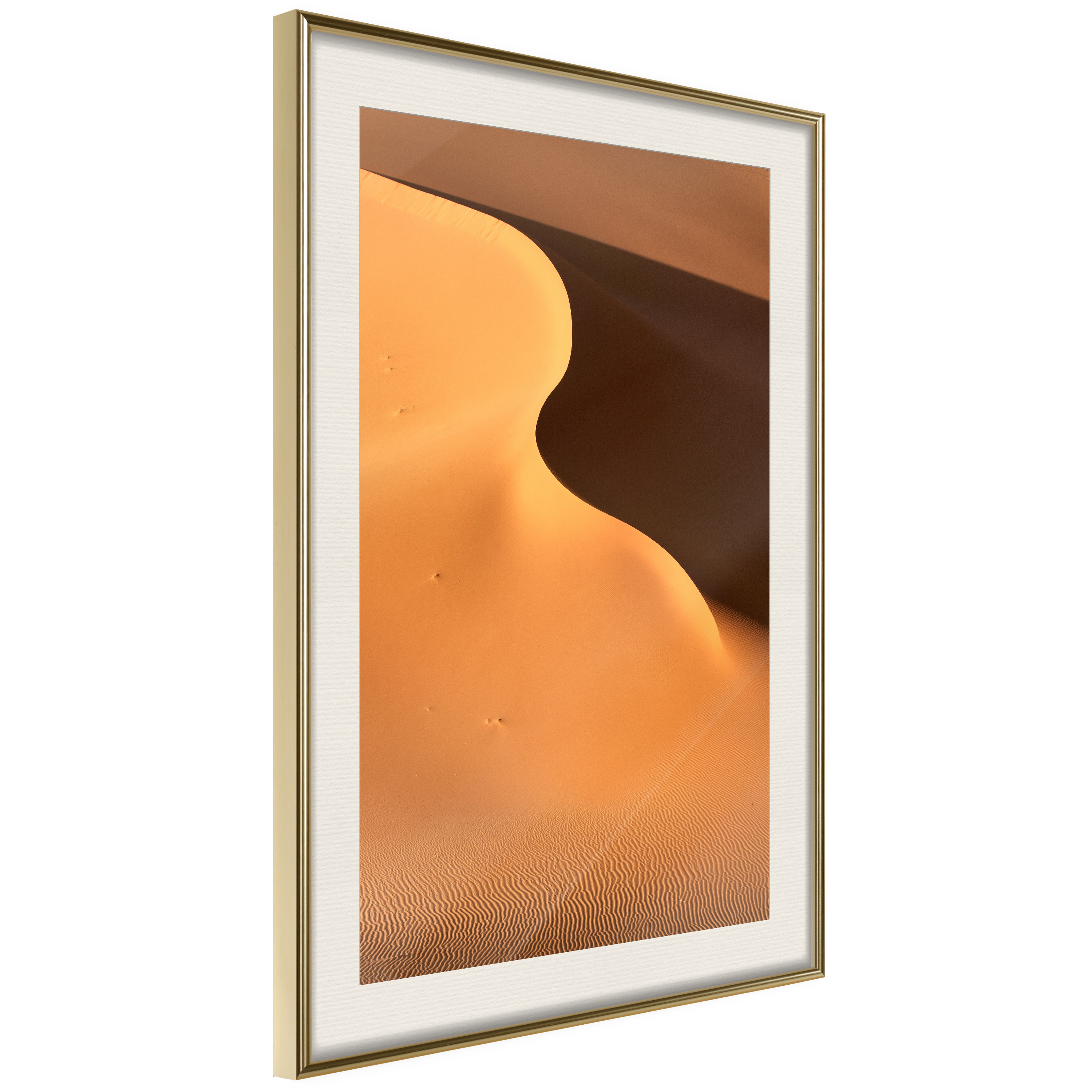 Passepartouten i écru betonar färgern på affischen och skapar en extra kontrast mellan grafiken, ramen och väggen. Dessutom ger den ramen ett svagt tredimensionellt intryck och fungerar även som ett skyddslager som ytterligare skyddar afischen. Affischen är säkrad med akrylglas och en hänganordning finns på ramens baksida.