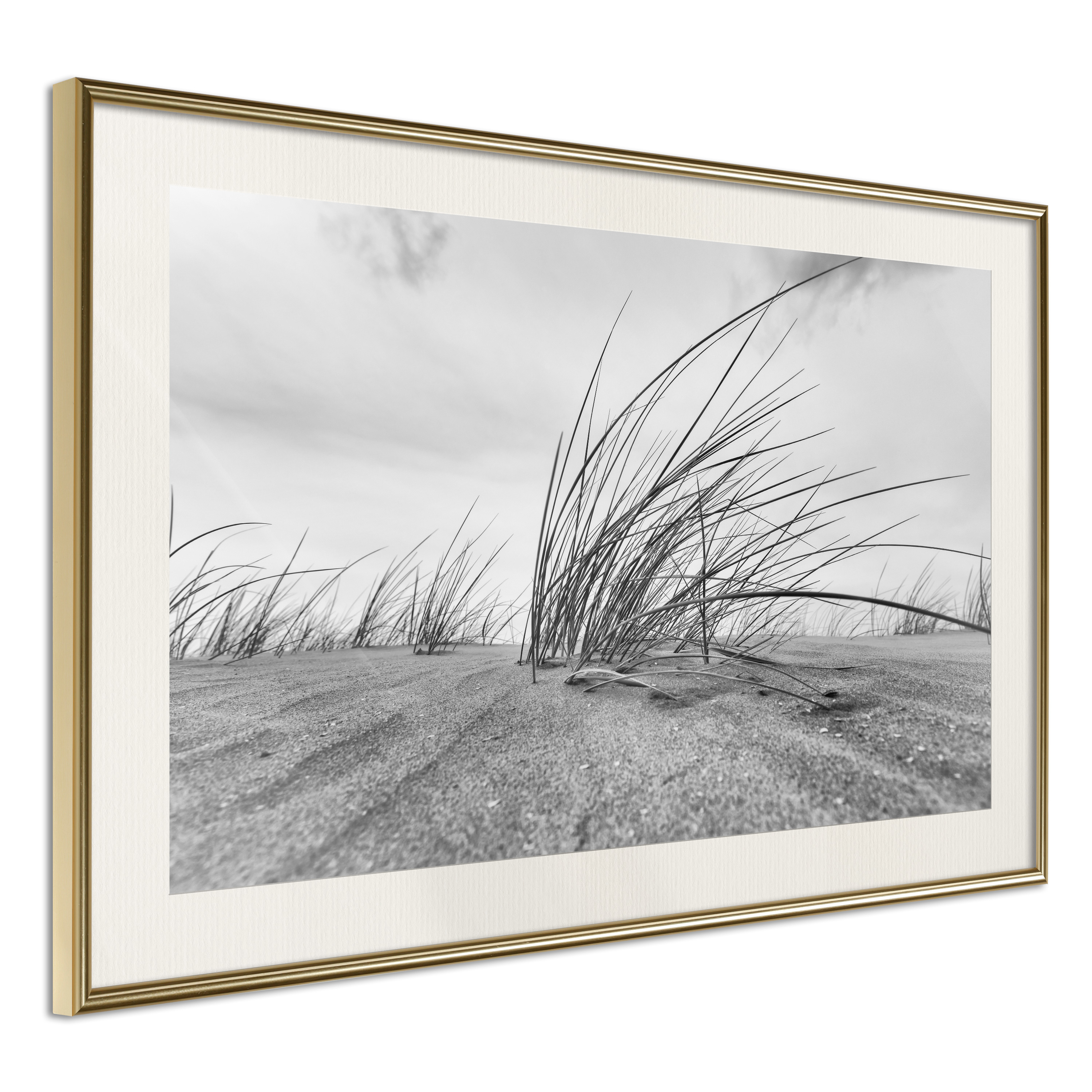 Passepartouten i écru betonar färgern på affischen och skapar en extra kontrast mellan grafiken, ramen och väggen. Dessutom ger den ramen ett svagt tredimensionellt intryck och fungerar även som ett skyddslager som ytterligare skyddar afischen. Affischen är säkrad med akrylglas och en hänganordning finns på ramens baksida.