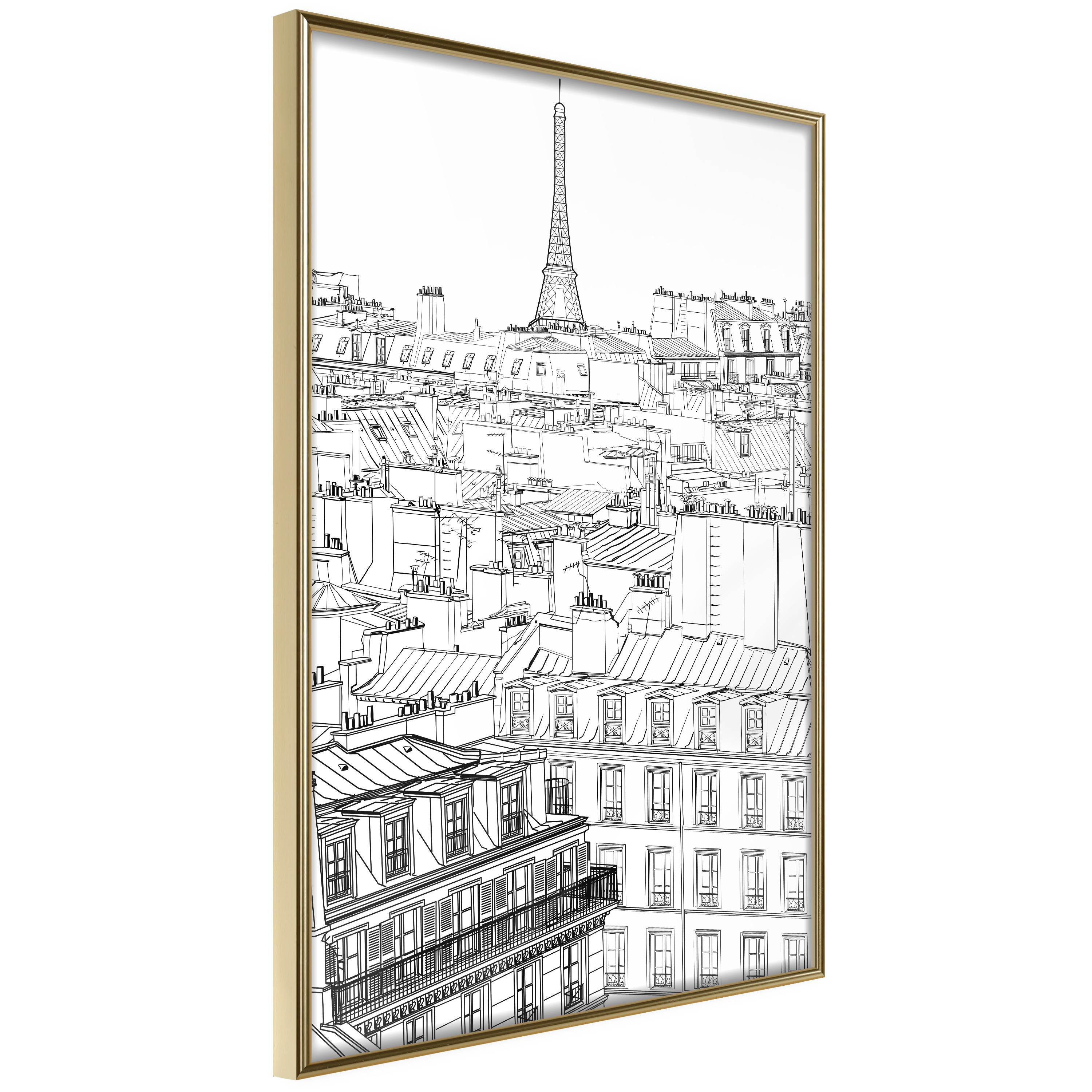 Affischen är inramad i en minimalistisk, lätt ram som gör den mer synlig mot väggen. Affischen är säkrad med akrylglas och en hänganordning finns på ramens baksida.