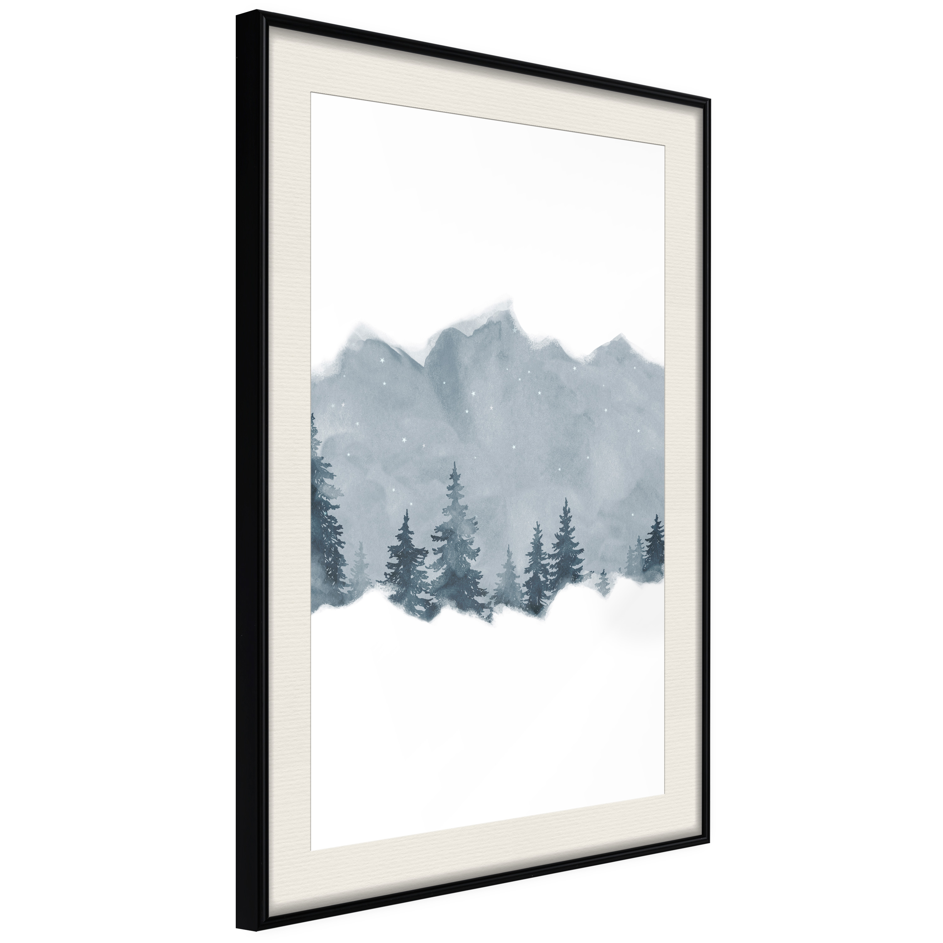 Passepartouten i écru betonar färgern på affischen och skapar en extra kontrast mellan grafiken, ramen och väggen. Dessutom ger den ramen ett svagt tredimensionellt intryck och fungerar även som ett skyddslager som ytterligare skyddar afischen. Affischen är säkrad med akrylglas och en hänganordning finns på ramens baksida.