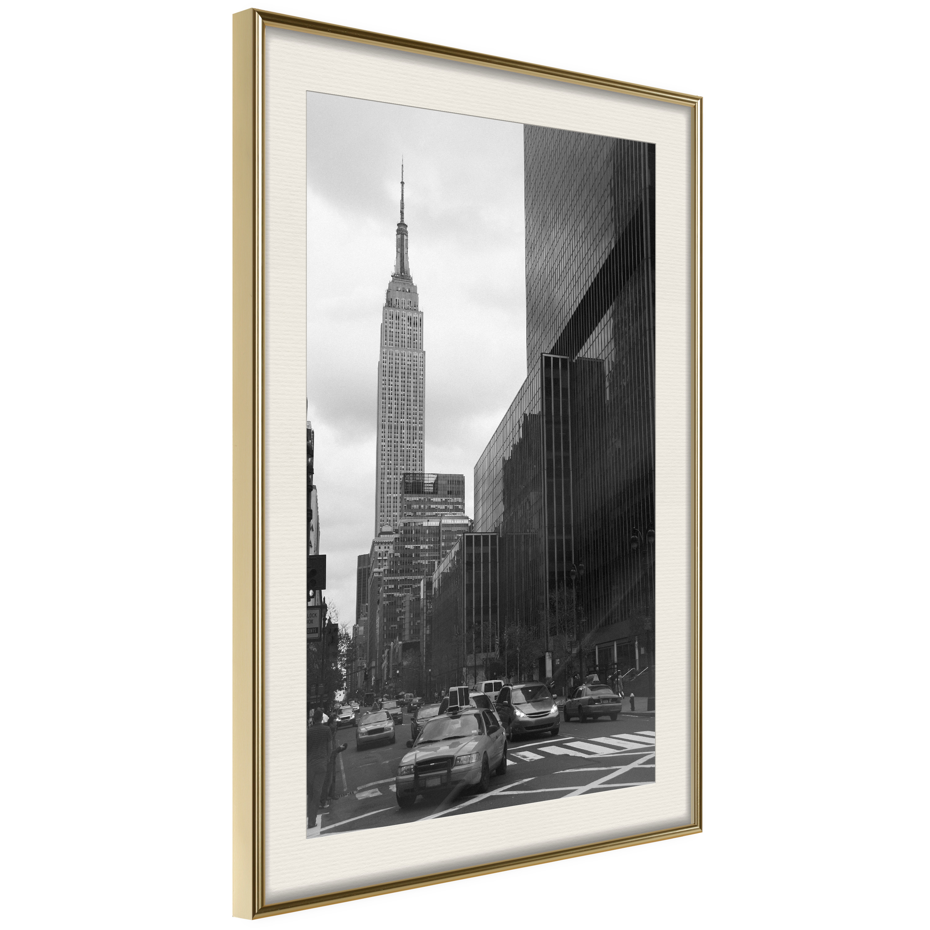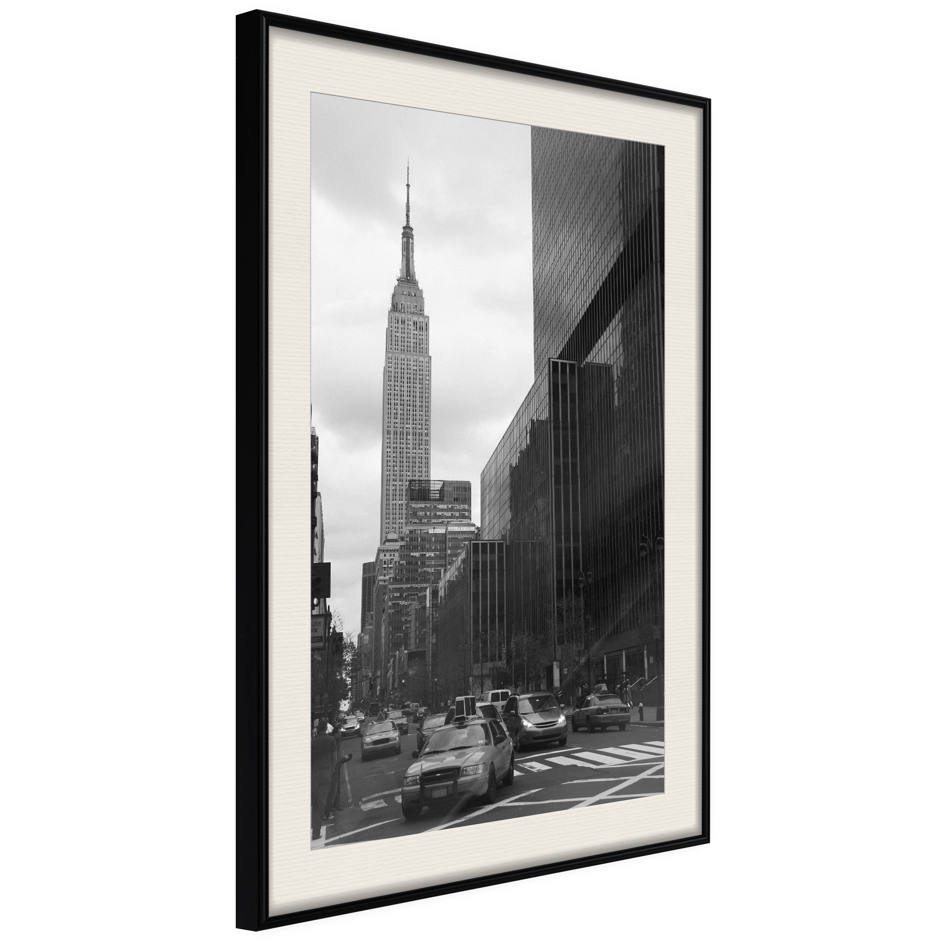 Passepartouten i écru betonar färgern på affischen och skapar en extra kontrast mellan grafiken, ramen och väggen. Dessutom ger den ramen ett svagt tredimensionellt intryck och fungerar även som ett skyddslager som ytterligare skyddar afischen. Affischen är säkrad med akrylglas och en hänganordning finns på ramens baksida.