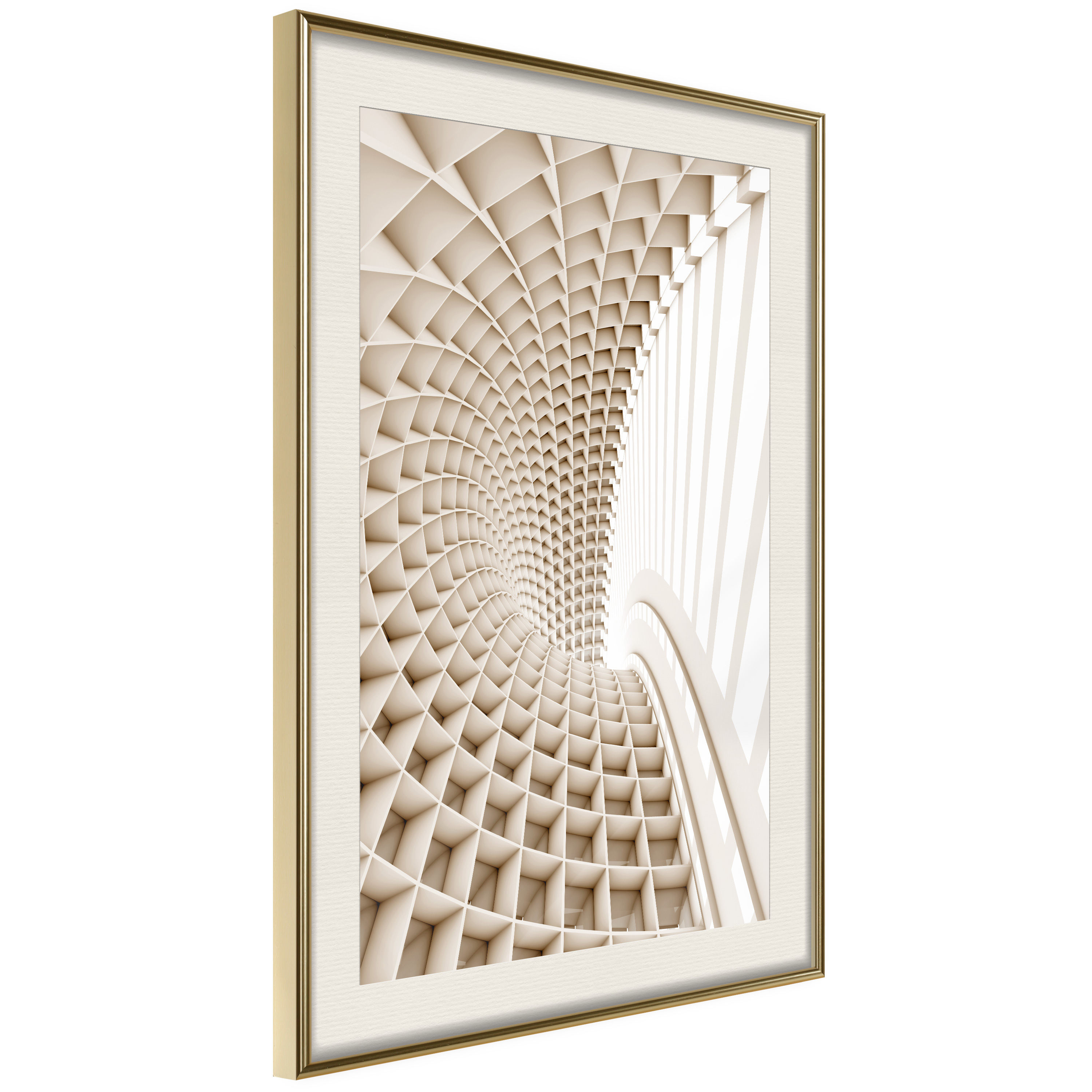 Passepartouten i écru betonar färgern på affischen och skapar en extra kontrast mellan grafiken, ramen och väggen. Dessutom ger den ramen ett svagt tredimensionellt intryck och fungerar även som ett skyddslager som ytterligare skyddar afischen. Affischen är säkrad med akrylglas och en hänganordning finns på ramens baksida.