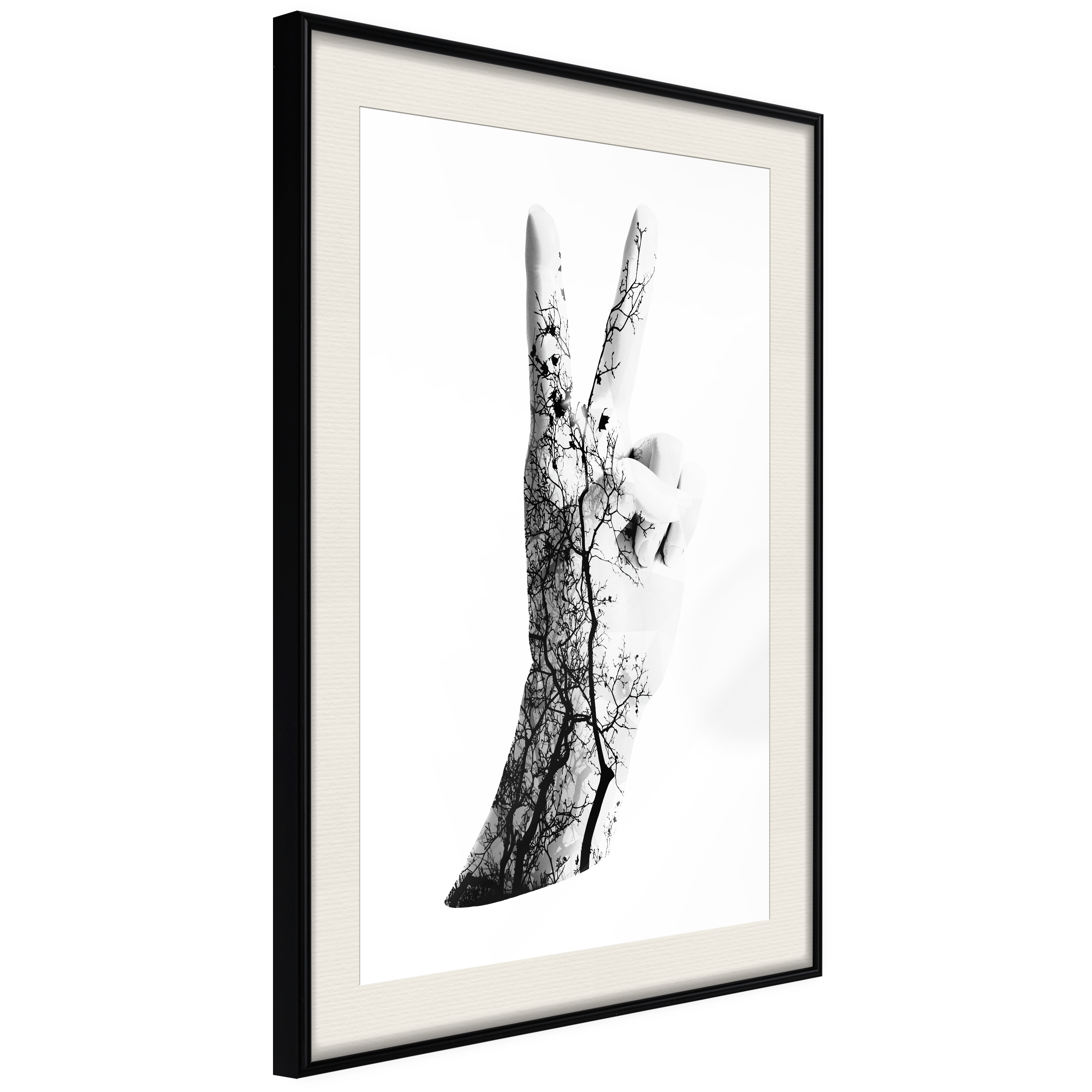 Passepartouten i écru betonar färgern på affischen och skapar en extra kontrast mellan grafiken, ramen och väggen. Dessutom ger den ramen ett svagt tredimensionellt intryck och fungerar även som ett skyddslager som ytterligare skyddar afischen. Affischen är säkrad med akrylglas och en hänganordning finns på ramens baksida.