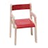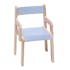 Barnstol Timmi från ABA Skol. Tillverkad i massiv bok med formspänd sits och rygg med armstöd. Sitsen har rundad kant framtill. Det finns inga spikar eller skruvar i sits och rygg. Stapelbar. Plasttass medföljer.