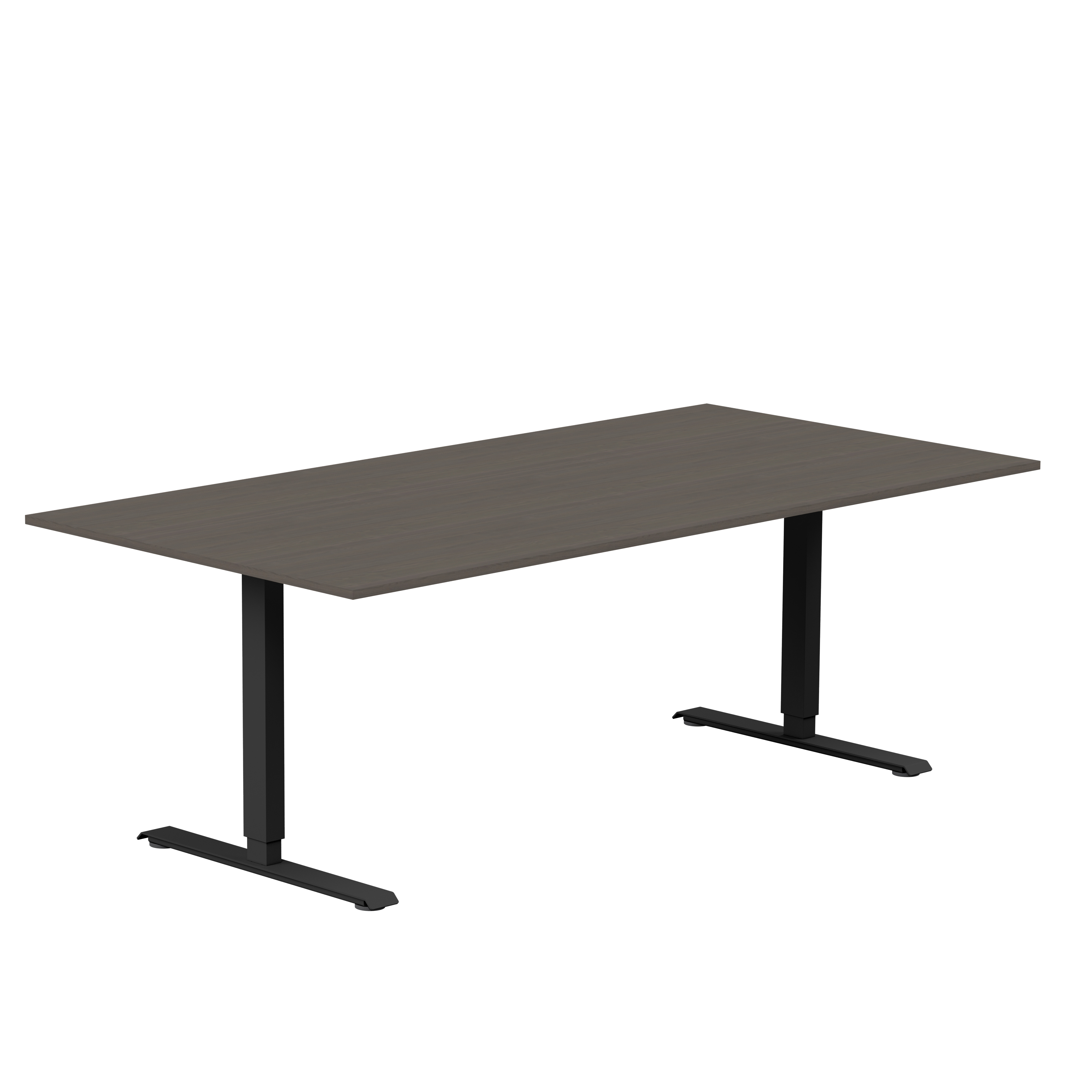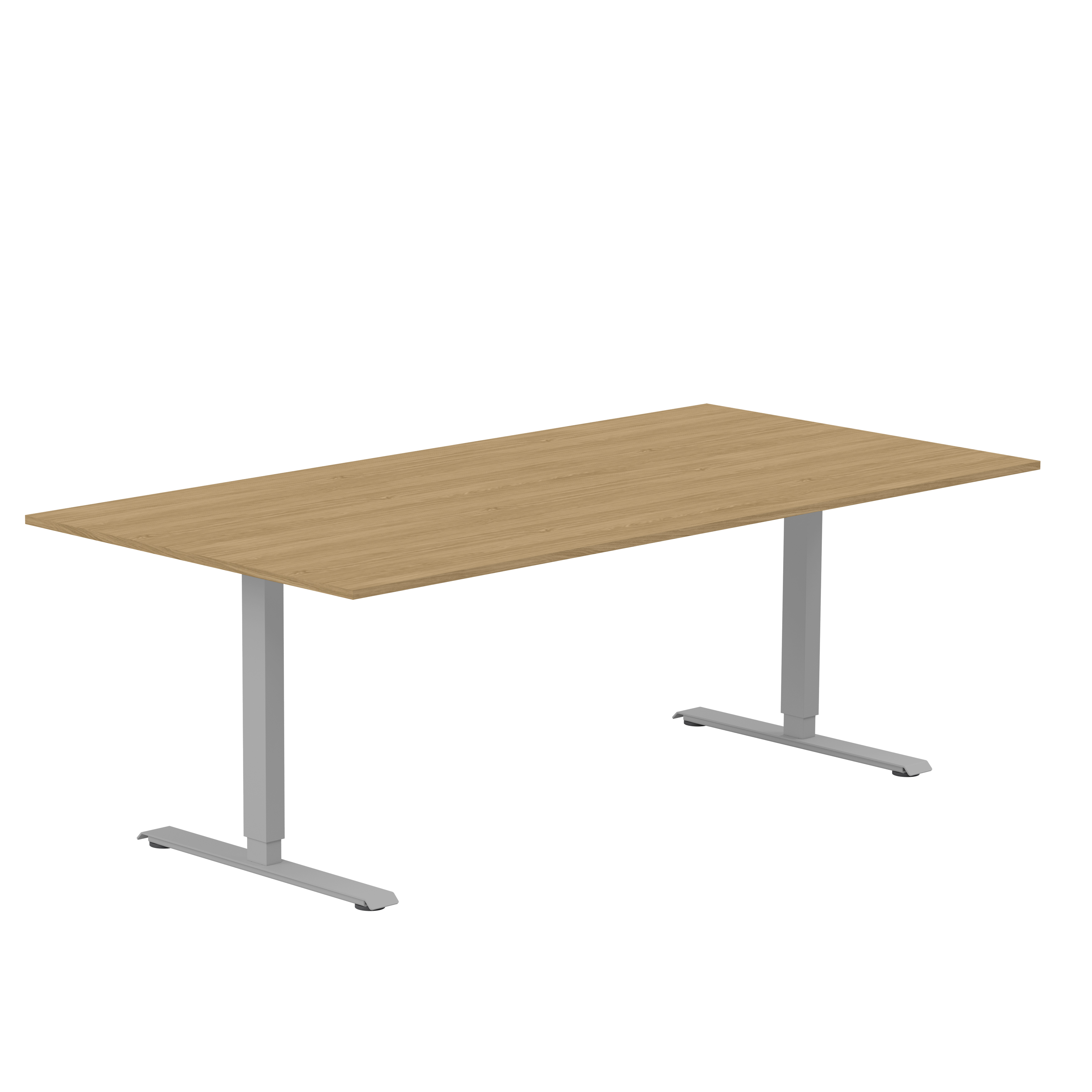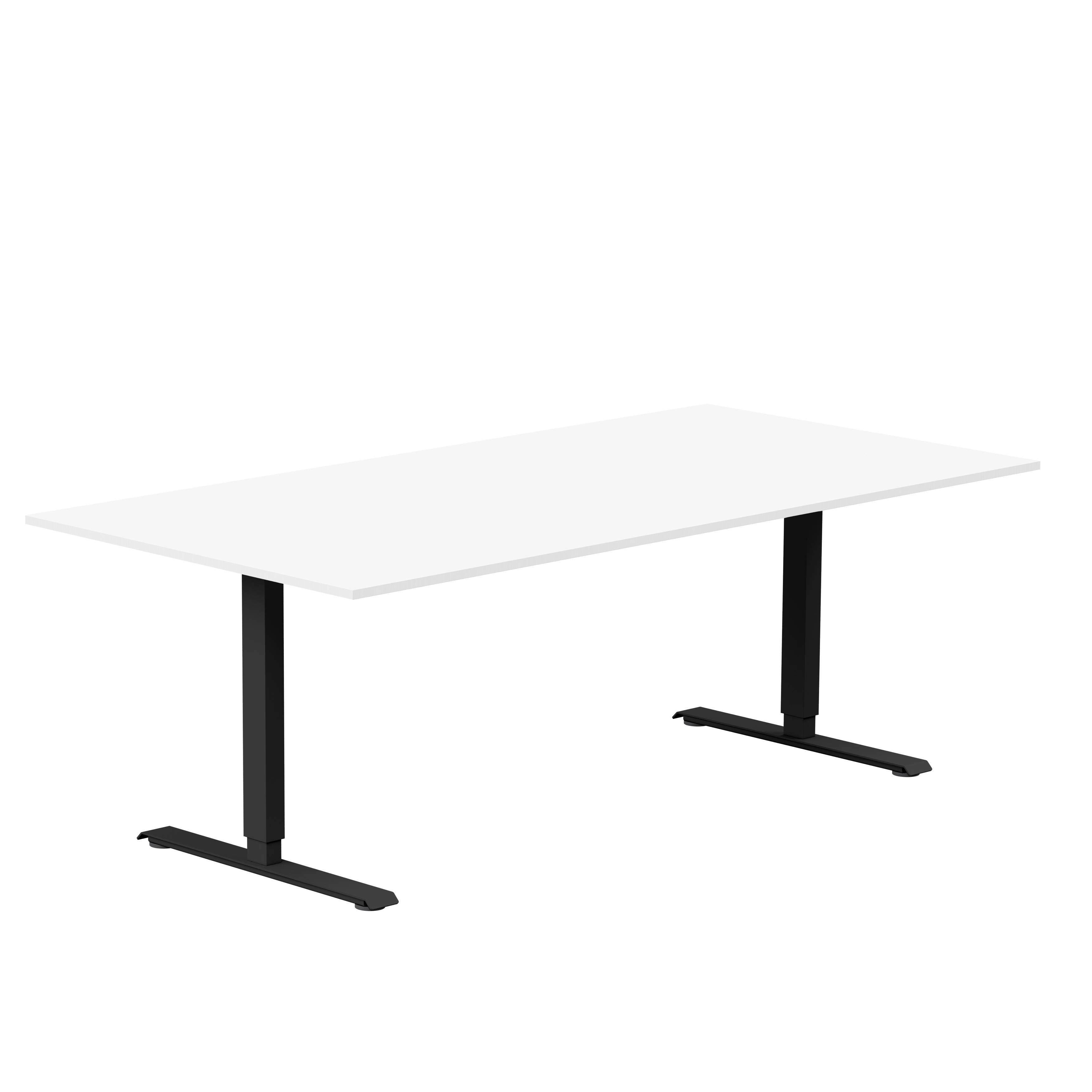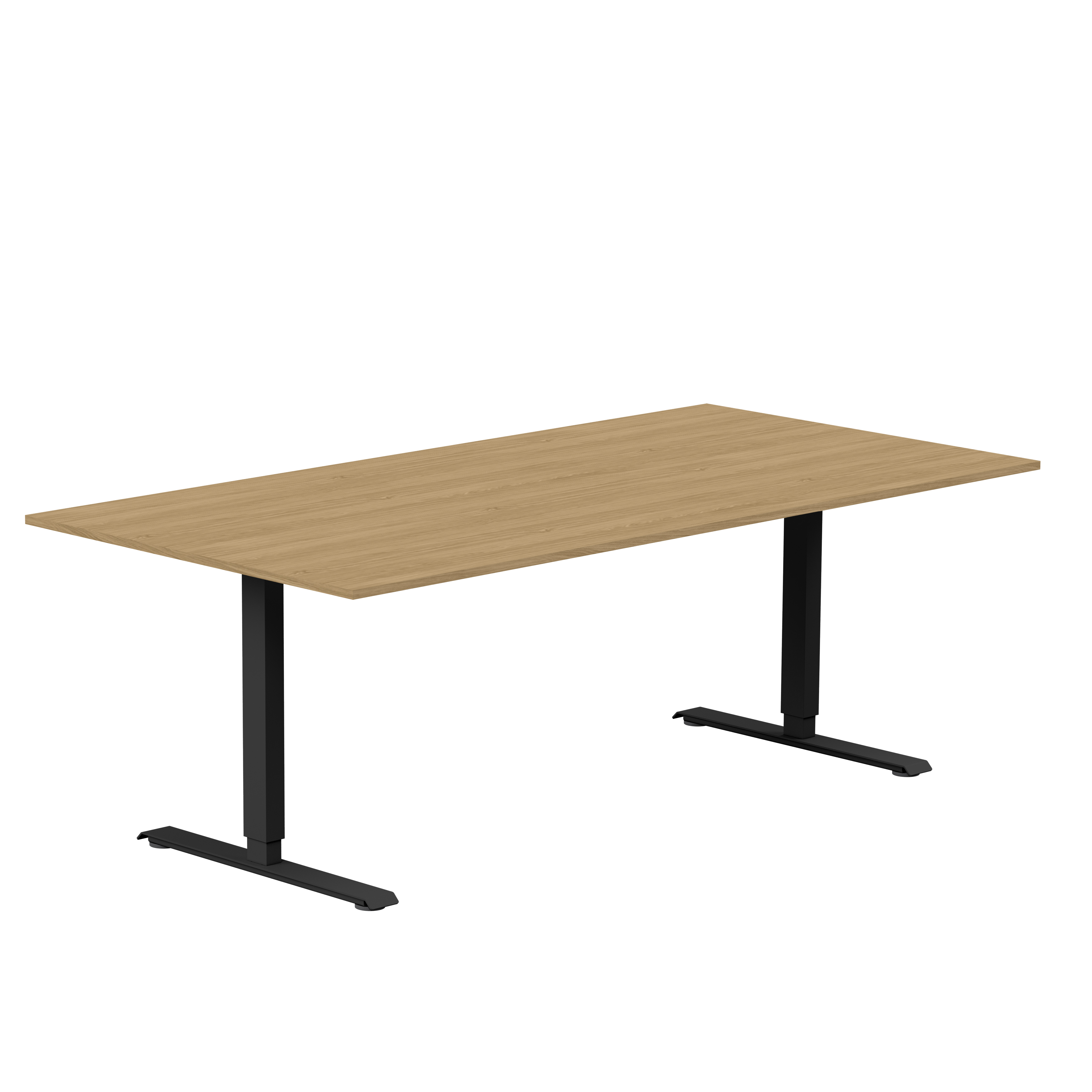 Rakt och stabilt konferensbord för 6-8 personer. Bordet har en stilren design med rektangulärt T-stativ och finns med flera sorters bordsskivor och i tre stativfärger. Bordshöjden kan ställas in manuellt så arbetshöjden kan justeras om det behövs.