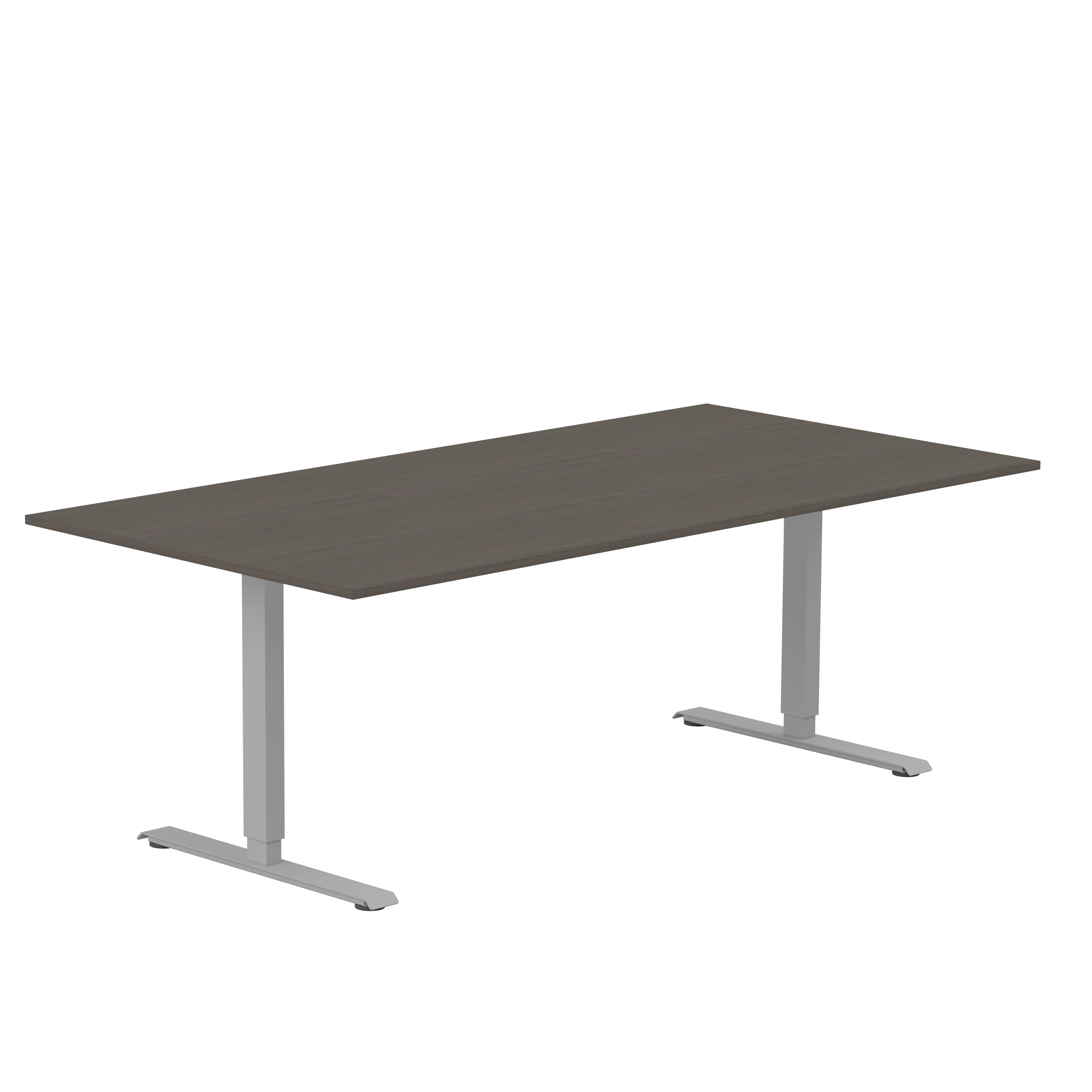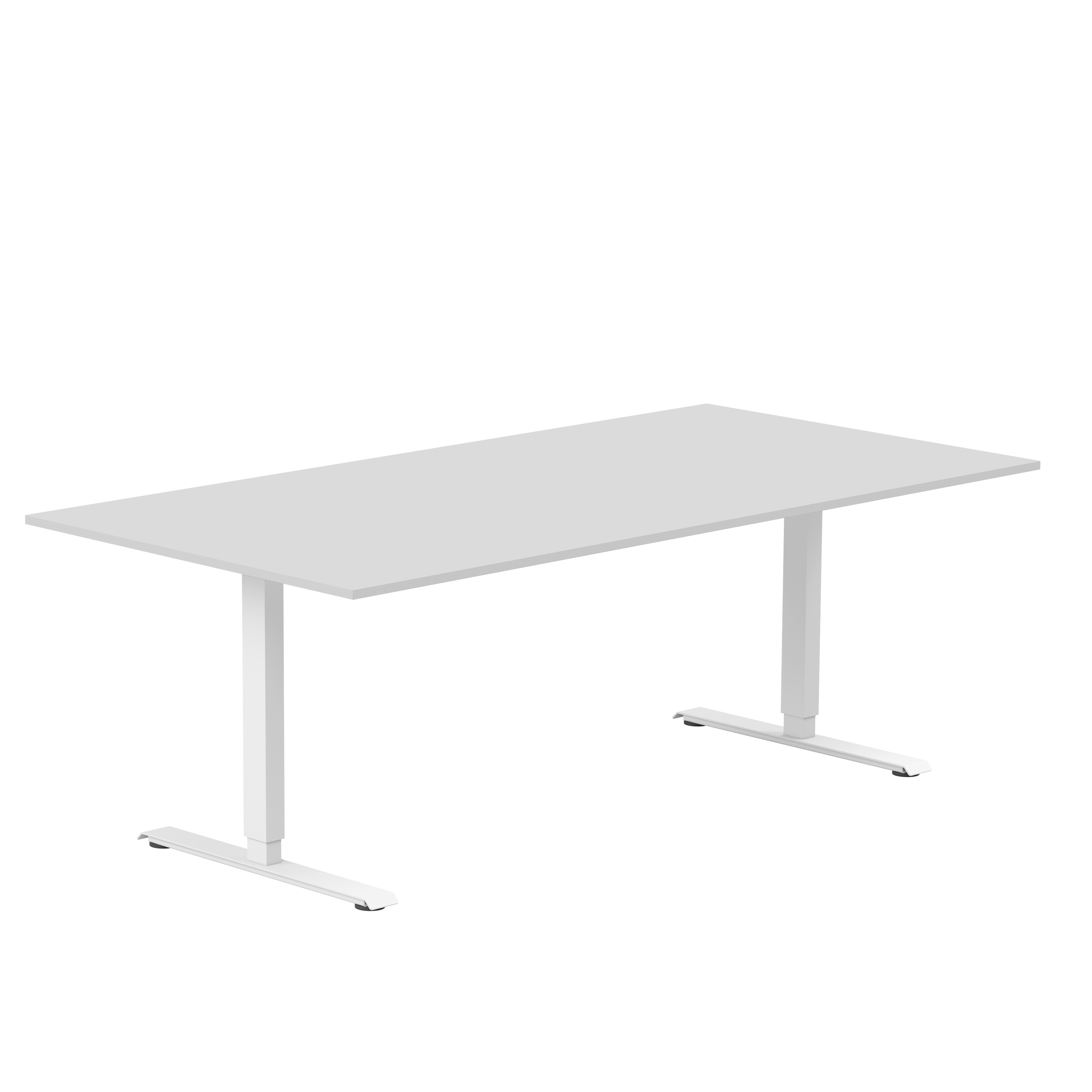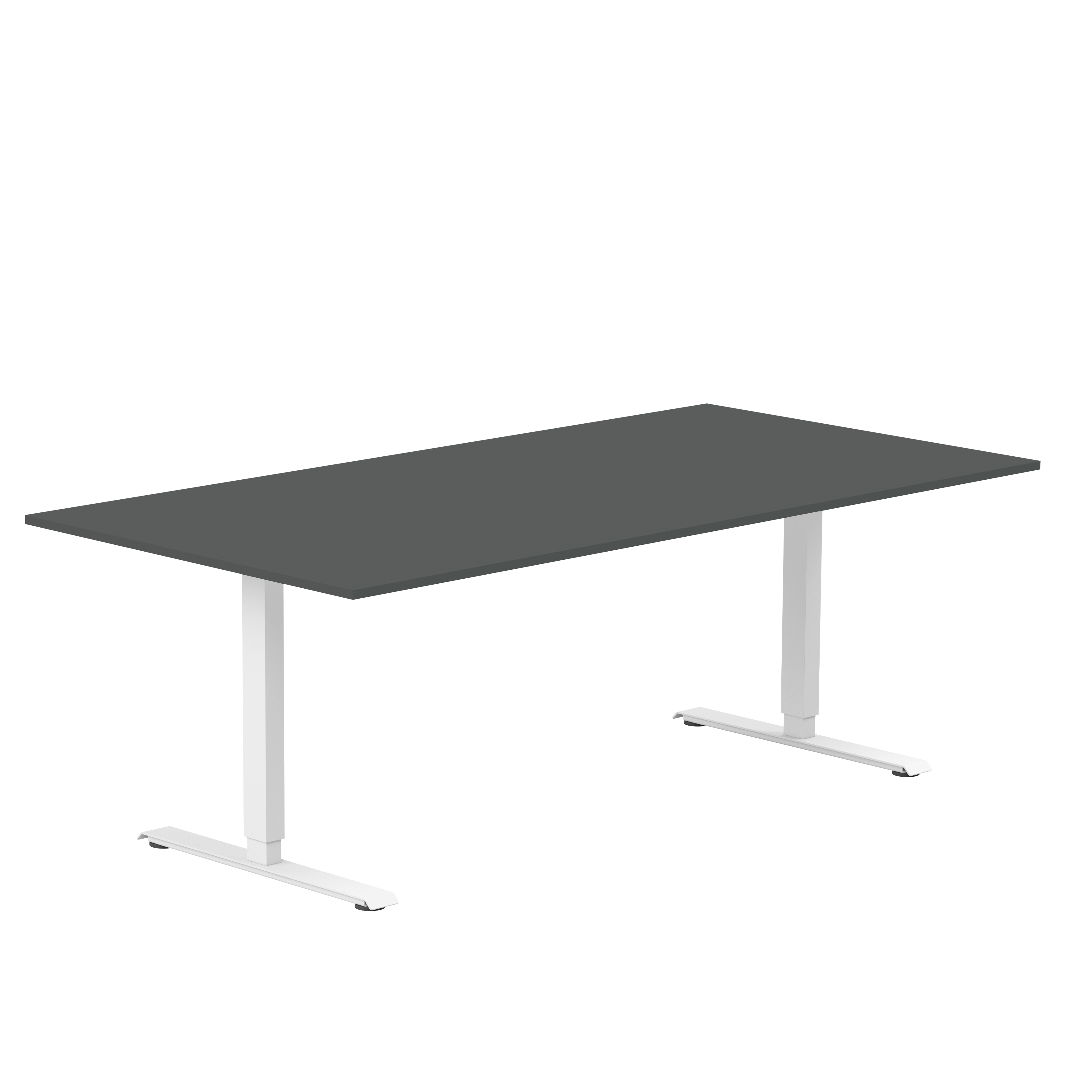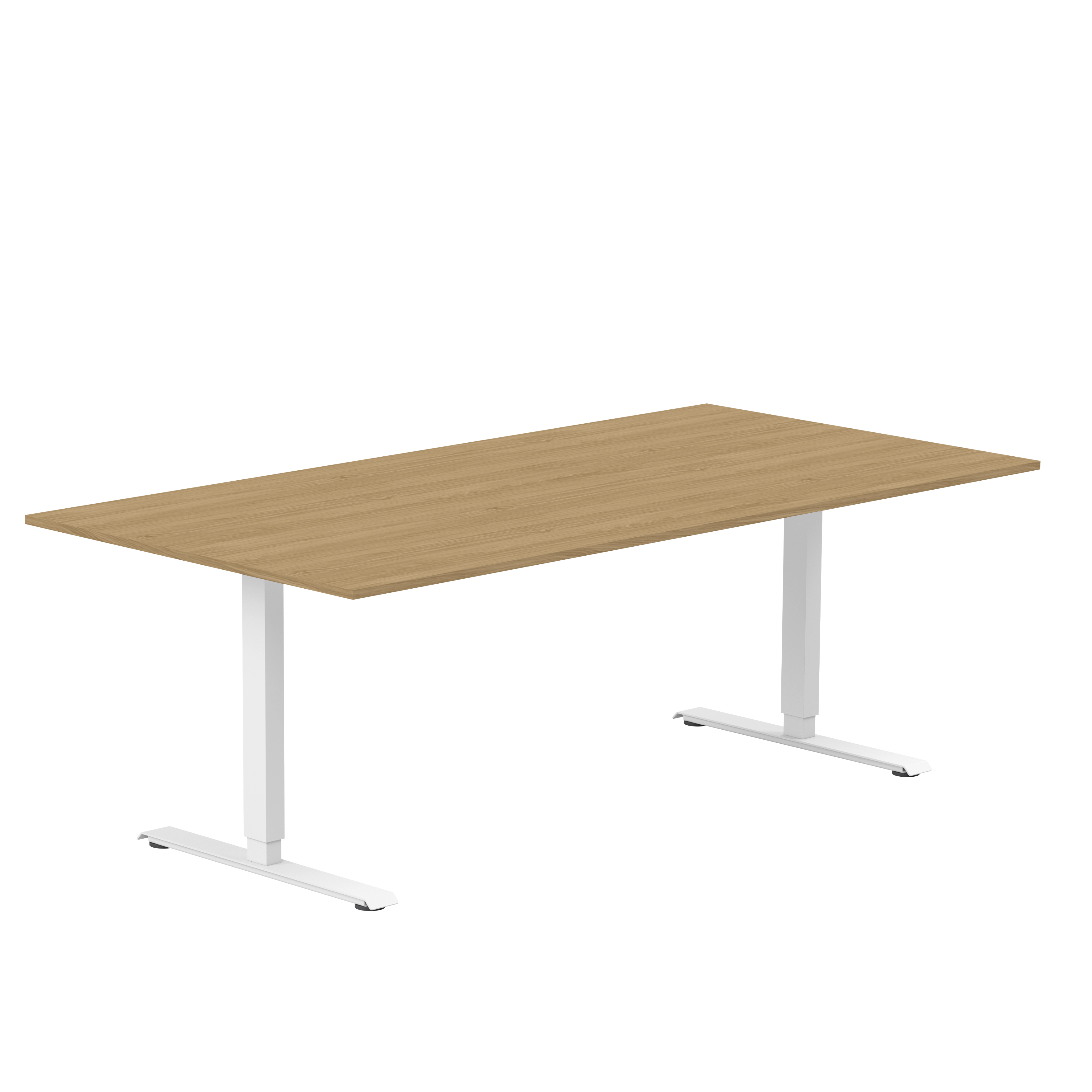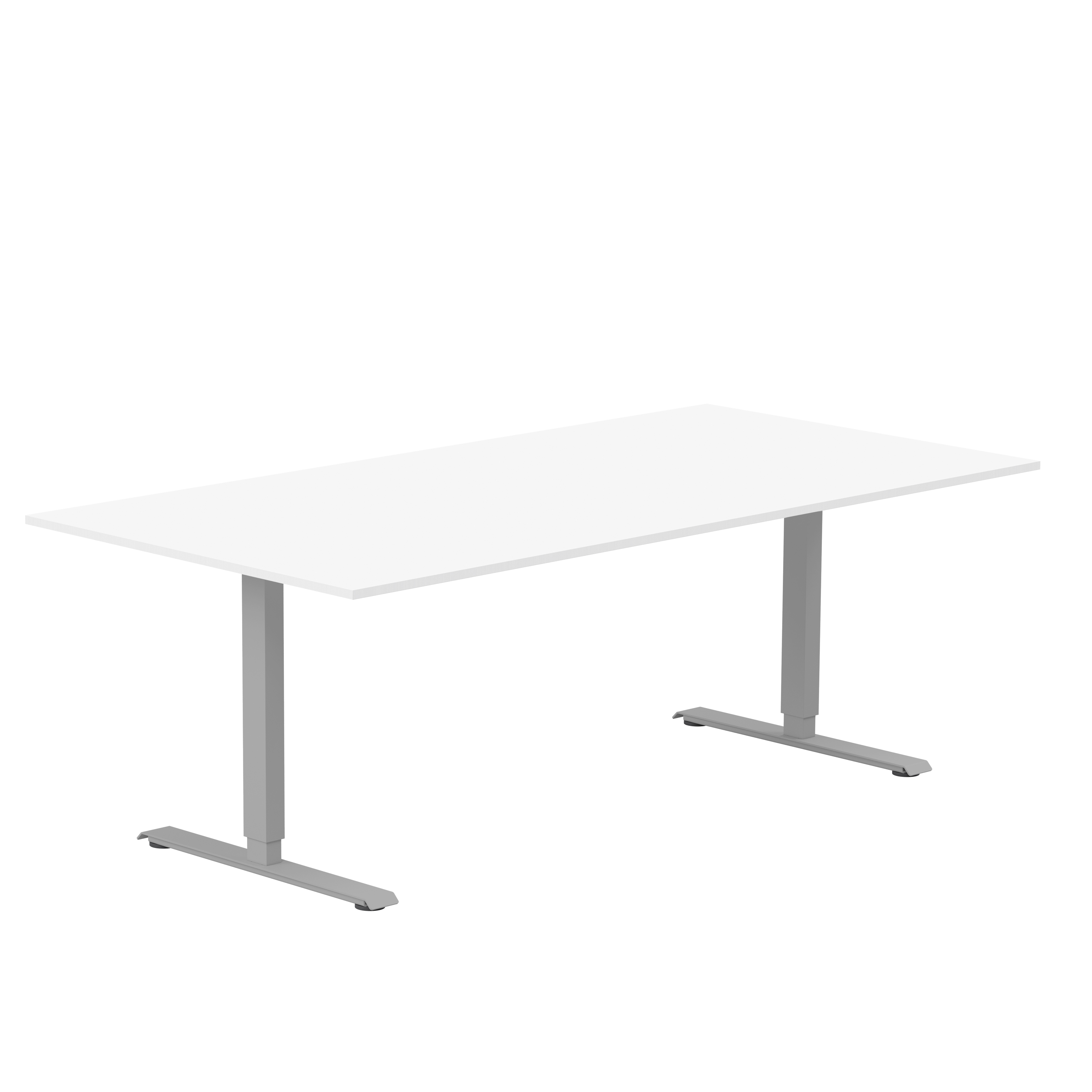 Rakt och stabilt konferensbord för 6-8 personer. Bordet har en stilren design med rektangulärt T-stativ och finns med flera sorters bordsskivor och i tre stativfärger. Bordshöjden kan ställas in manuellt så arbetshöjden kan justeras om det behövs.