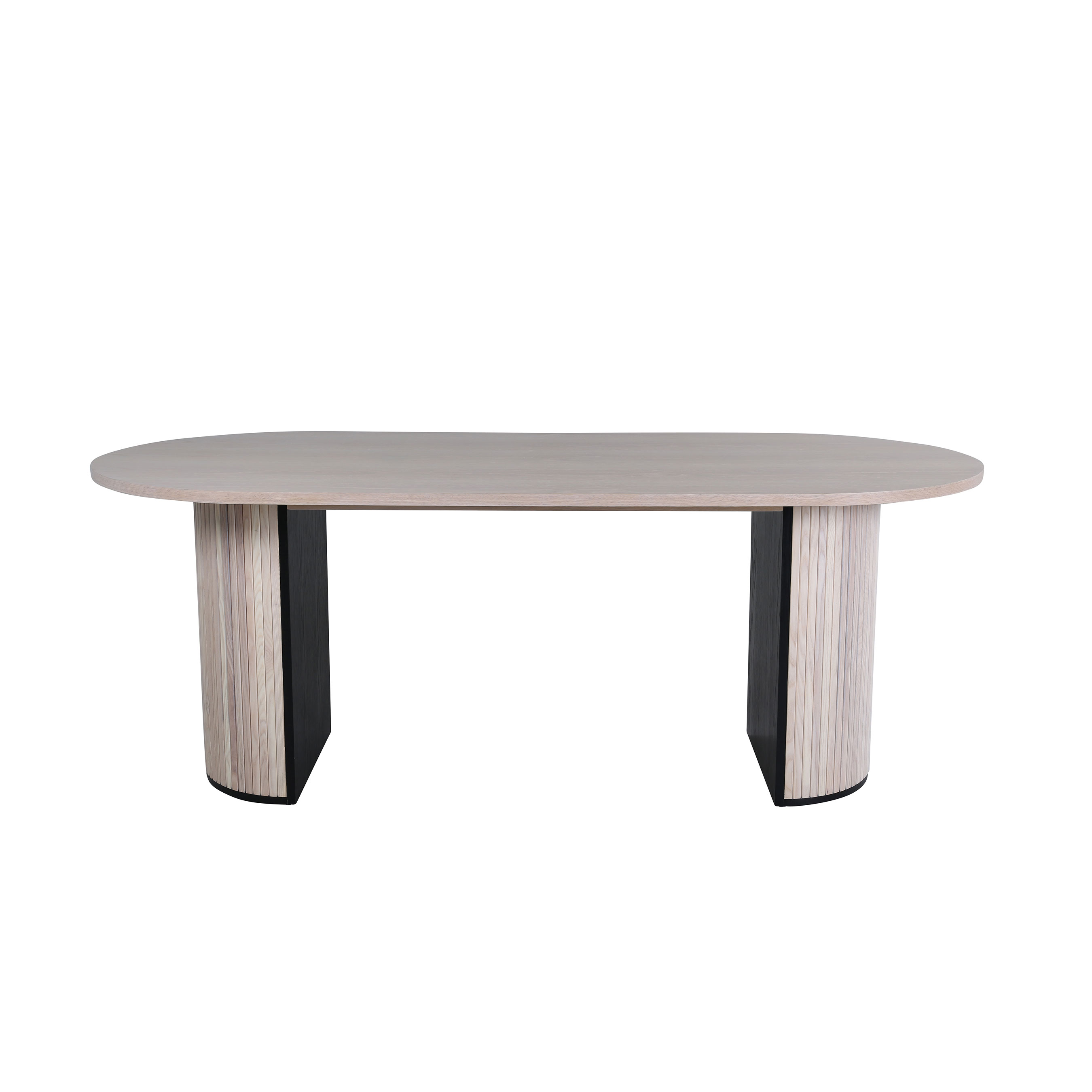 Matbord Bianca är ett ovalt modernt bord med en toppskiva med bordsben i trä och MDF. Bordet utgör en perfekt mittpunkt för att samla familj och vänner. Mått: 200x90x75 cm. Enklare montering krävs.