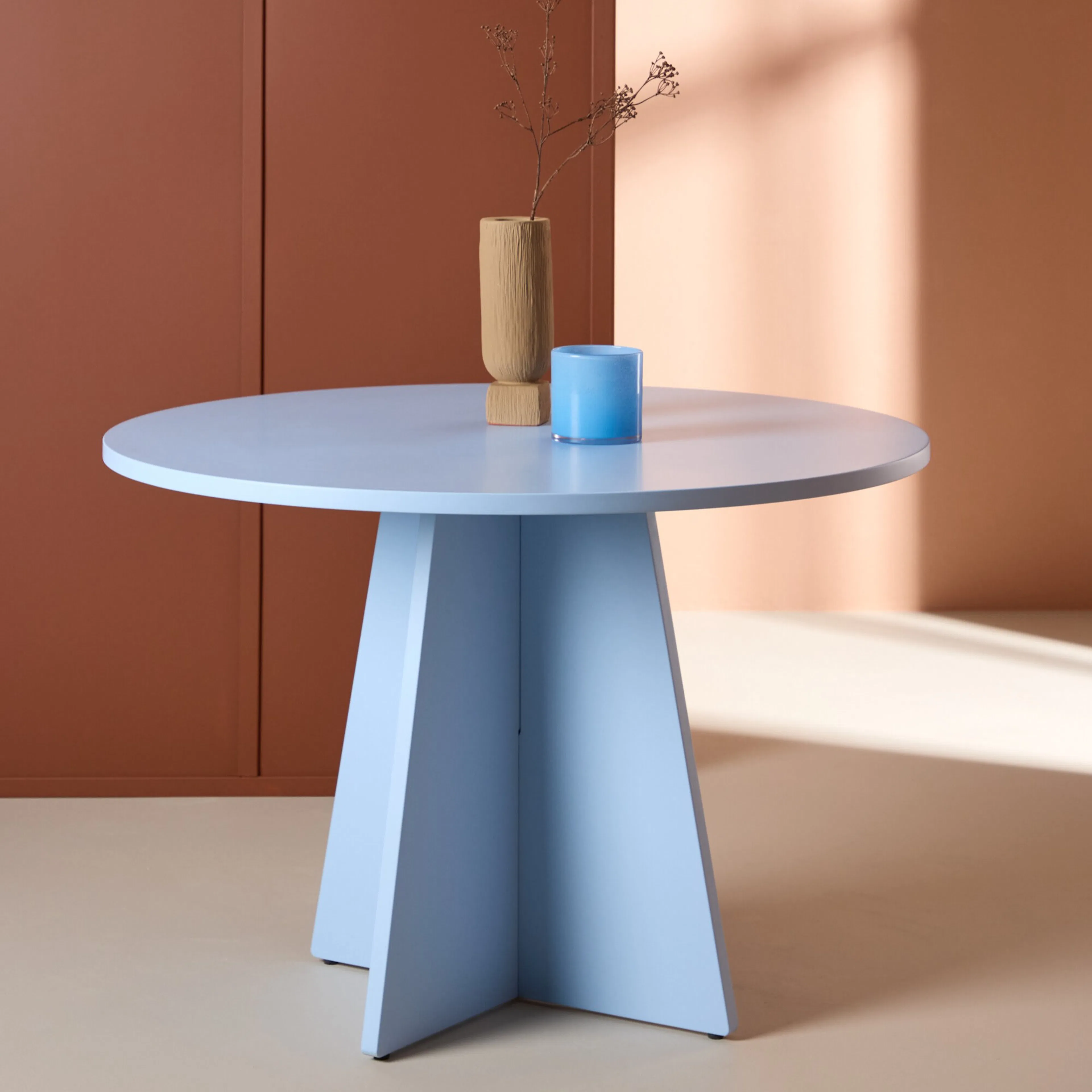 Fånga uppmärksamheten i ditt hem med det stilfulla matbordet Bootcut, som kombinerar modern design med en lekfull touch. Med en diameter på 110 cm och en enhetlig babyblå färg över hela bordet blir Bootcut ett centralt inslag i din matplats, där färg och form möts i perfekt harmoni.