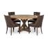 Matgrupp Lyon 150 cm Rund med 4 Tuva Fåtölj från In Living är ett robust, runt bord med fyra stoppade stolar.