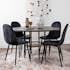 Matgrupp Venture Home Copenhagen med 4 Polar stolar. Stilrent, modernt och tidlöst - en matgrupp som imponerar! Bordets cylinderformade ben är gjorda i metall och den runda toppskivan i MDF med fanér. Stolen har en helklädd design med en rundad rygg och sits i sammetstyg med mjuk stoppning och ben i pulverlackerad metall.