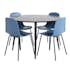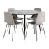 Matgrupp Dipp Rund med 4 Arctic Stolar från Venture Home är en matgrupp med ett stilrent, runt matbord i svart MDF med svarta bordsben i metall. Det medföljer fyra matstolar med svarta stolsben i metall och sitsar i plast.