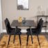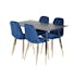 Matgrupp Dipp med 4 Polar Stolar Sammet från Venture Home är en elegant matgrupp med ett rektangulärt matbord med en stomme och ben i svart pulverlackerad metall med benslut i mässingsfoliering samt med en bordsskiva i svart fanér med en kärna i MDF. Det medföljer fyra matstolar i en helklädd design med ben i svart pulverlackerad metall med benslut i mässingsfoliering med en lätt rundad rygg och sits i sammetstyg. Lättare montering krävs.