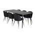 En snygg matgrupp från Venture Home bestående av Dipp matbord med sex stycken Velvet-stolar med svarta ben som har vackra detaljer.