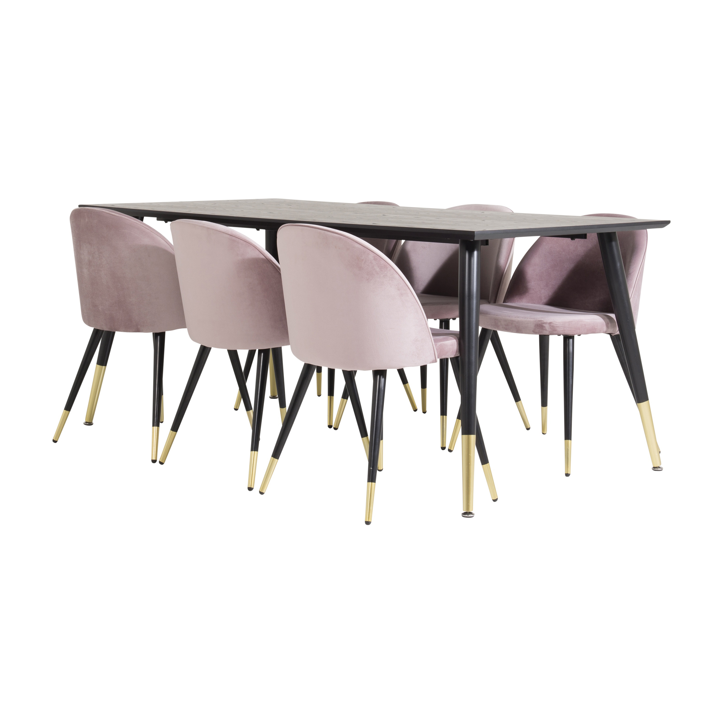 Matgrupp Venture HomeDipp med 6 Velvet StolarSvart/Rosa/Mässing, Sammet