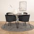 Matgrupp Dipp, med ett runt matbord i MDF med svarta bordsben i metall. Matchas med 4 st Berit matstolar med sitsar i sammet.