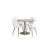 Matgrupp Estelle med 4 Pooya Stolar PolyEstelletyg från Venture Home är en stilren matgrupp med ett runt matbord i modern design med trumpetfot i pulverlackerad metall med en bordsskiva i marmor. Det medföljer fyra matstolar i en helklädd design med ben i svart pulverlackerad metall. Stolarna har en rundad rygg och sits i vitt teddy polyEstelletyg med mjuk stoppning. Lättare montering krävs.