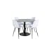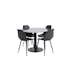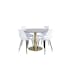 Matgrupp Estelle med 4 Pop Stolar från Venture Home är en elegant matgrupp med ett runt matbord i modern design med trumpetfot i pulverlackerad metall med en bordsskiva i marmor. Det medföljer fyra matstolar i modern design med ben i pulverlackerad metall. Stolarna har en skålformad, rundad rygg och sits i helgjuten plast. Lättare montering krävs.