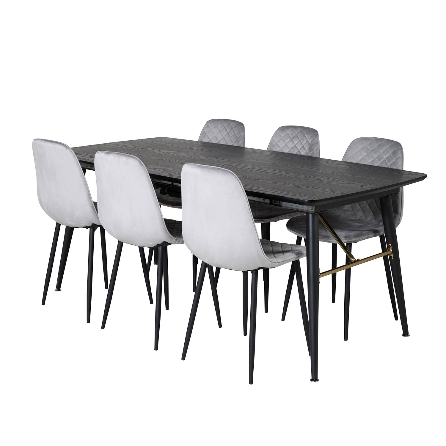Matgrupp Dipp med 6 Polar Stolar Sammet från Venture Home är en stilren matgrupp med ett förlängningsbart matbord i svart MDF och svarta bordsben i metall. Det medföljer sex matstolar med stolsben i metall och sitsar i sammet.