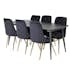 Matgrupp Venture Home Gold med 6 Velvet Stolar Sammet är en elegant matgrupp med ett förlängningsbart matbord i svart MDF och svarta bordsben i metall. Det medföljer sex matstolar med stolsben i metall och sitsar i sammet.