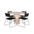 Matgrupp Bianca, med ett runt matbord i MDF med faner med bordsben i trä och MDF. Matchas med 4 st Kungshamn matstolar med sitsar i konstläder.
