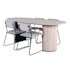 Matgrupp Bianca, med ett ovalt matbord i MDF med faner med samt bordsben i trä och MDF. Matchas med 4 st Kungshamn matstolar med sitsar i sammet.