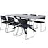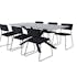 Matgrupp Piata, med ett matbord i MDF med faner med bordsben i järn. Matchas med 6 st Kungshamn matstolar i sammet.
