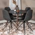 Matgrupp Plake med 4 Pobbie Stolar Design med Snurrfunktion Konstläder från Venture Home är en stilren matgrupp med ett runt matbord med ben i metall och en bordsskiva av MDF. Det medföljer fyra matstolar i en helklädd design med snurrfunktion, stomme och ben i svart pulverlackerad metall med en lätt rundad rygg och sits i stoppat konstläder med dekorsöm. Lättare montering krävs.