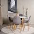 Med sin eleganta svarta bordsskiva passar Venture Homes runda matbord Plaza perfekt till både vardags och fest! Här tillsammans med de sittvänliga matstolarna Polar i läcker färgskala.