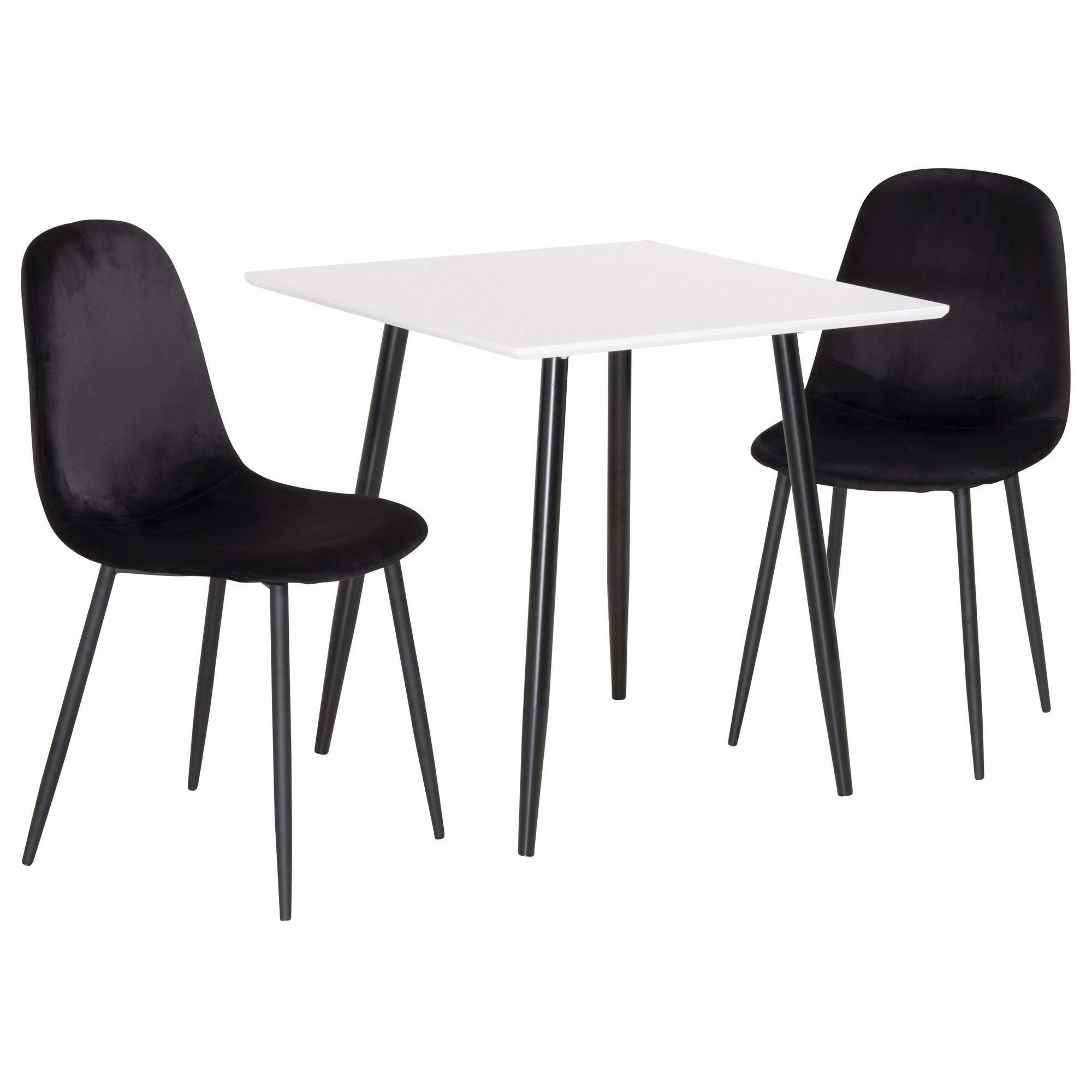 Matgrupp Pobbie med 2 Stolar från Venture Home är en stilren matgrupp med ett fyrkantigt bord och två stolar klädda i sammet. Lättare montering krävs.